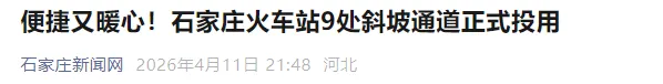 看似简单的斜坡,却藏着满满的贴心——从此再也不用费劲搬运行李上下台阶,推着行李箱、婴儿车就能顺畅通行,极大减轻了旅客的出行负担,也让老弱病残孕等特殊旅客的出行更加便捷,用细节彰显了石家庄城市管理的人文温度。