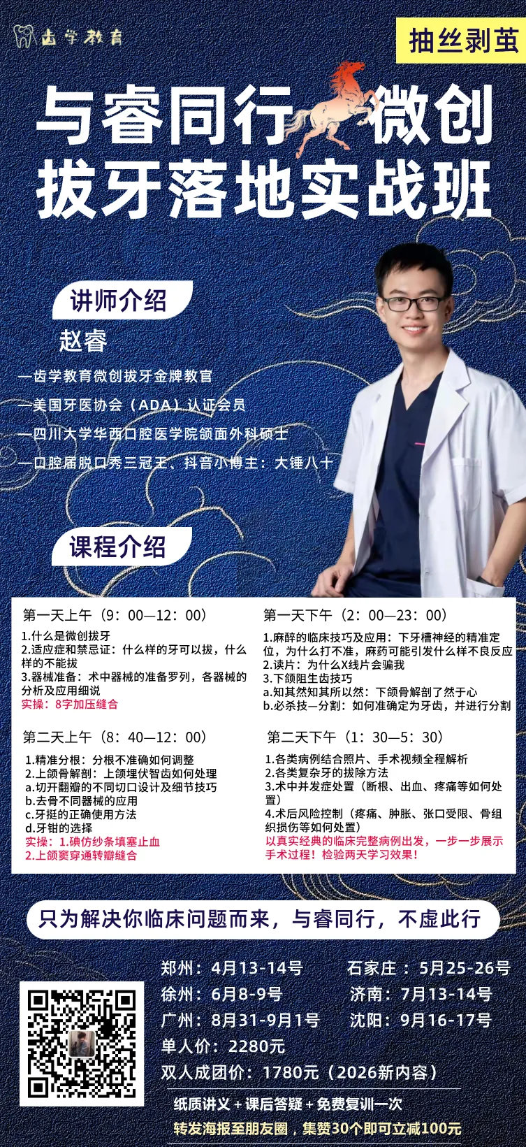 【5月25-26微创拔牙石家庄站】华西硕士赵睿老师主讲,跟着锤哥学拔牙,安全高效!!