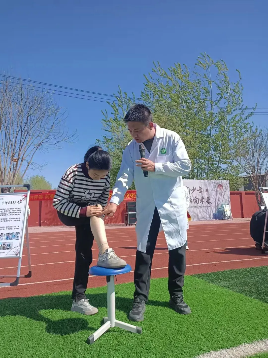 理论讲解之后,活动进入了最受期待的体验环节——穴位针灸与按压体验。石家庄中和健康学校的老师现场演示了如何准确找到几个常用保健穴位,如合谷穴、足三里穴等,并讲解了这些穴位的保健功效。