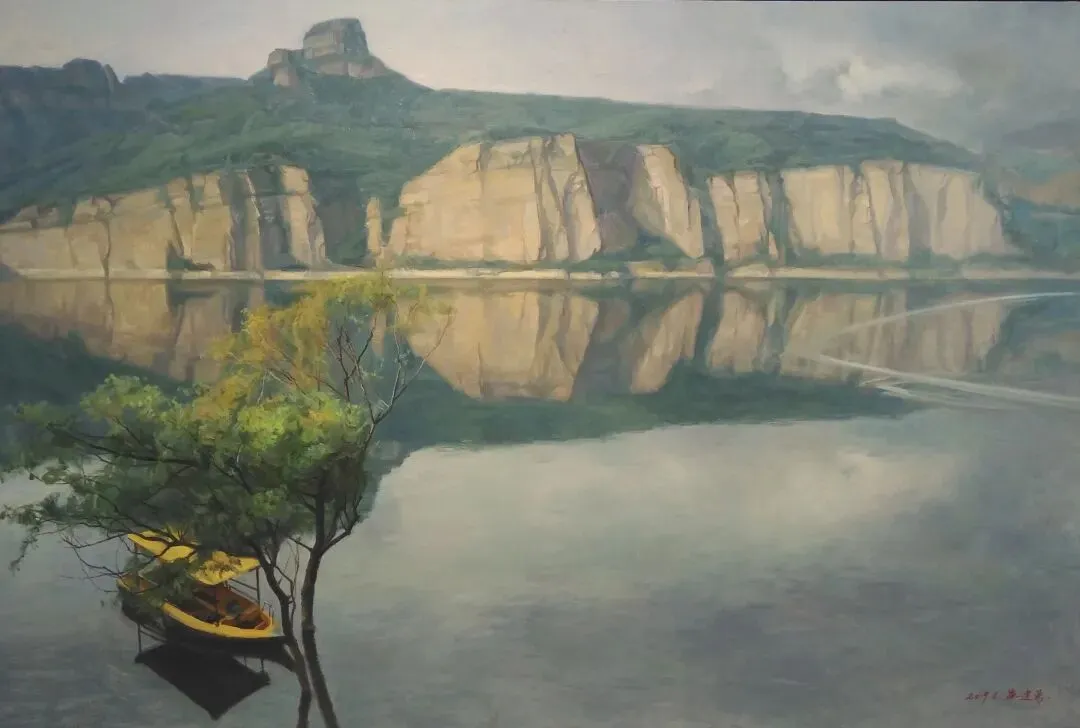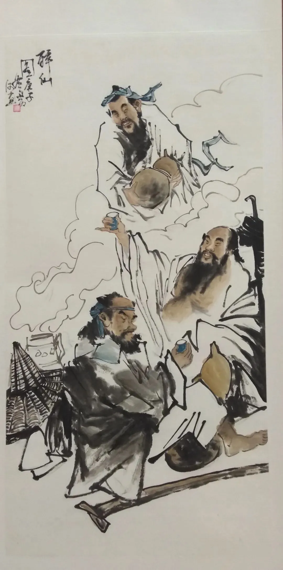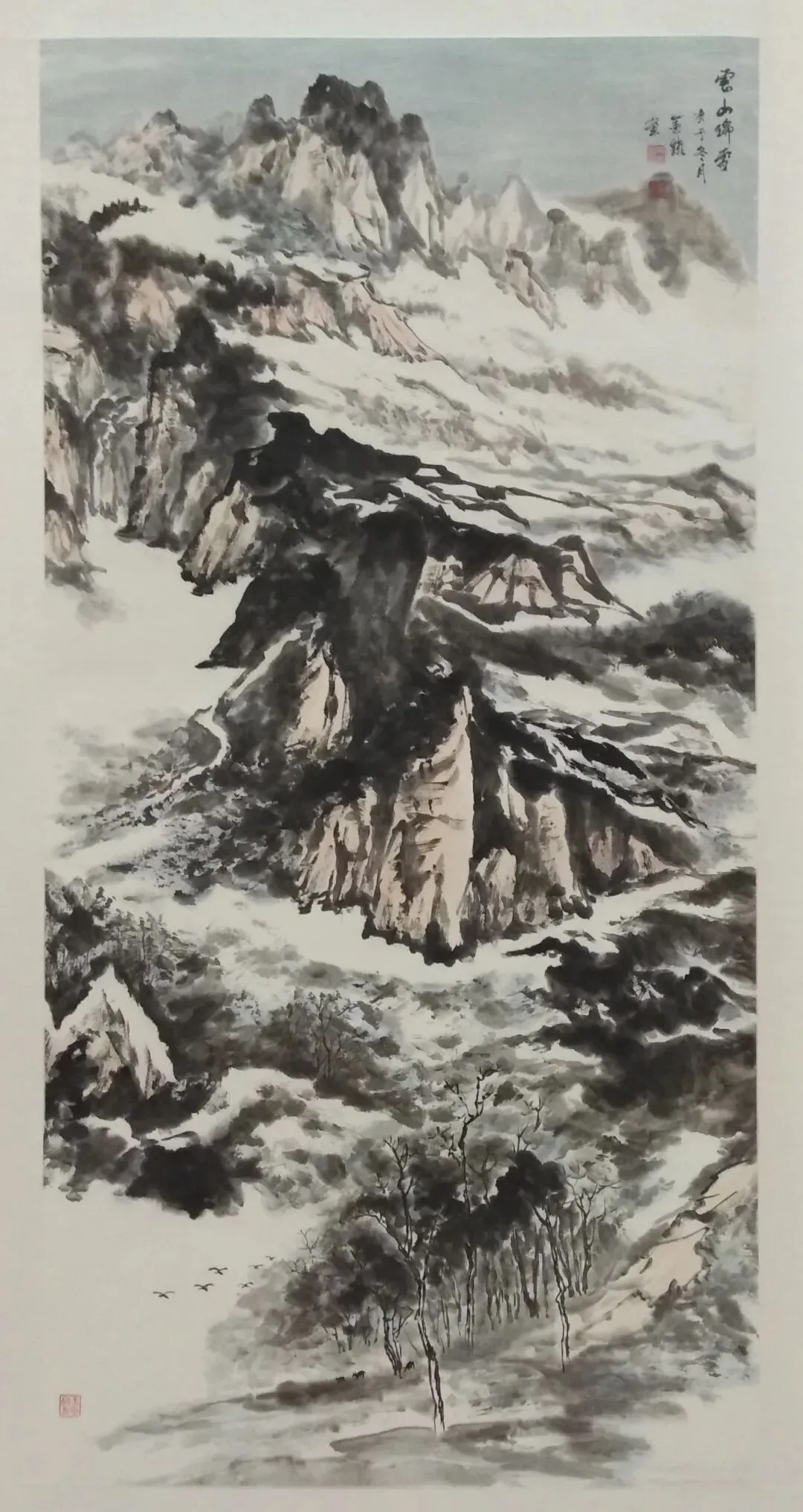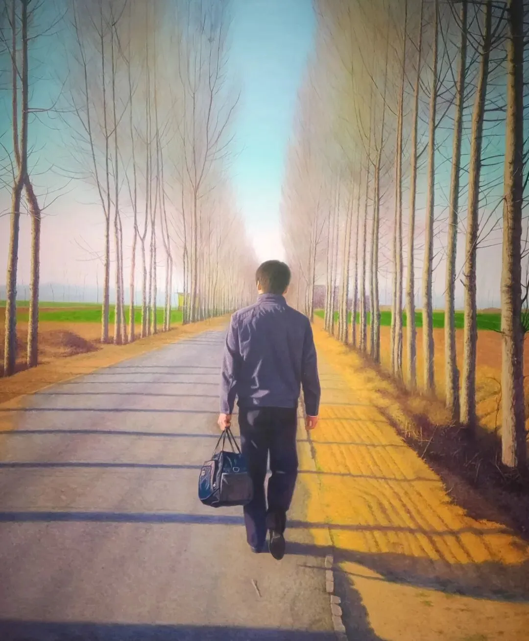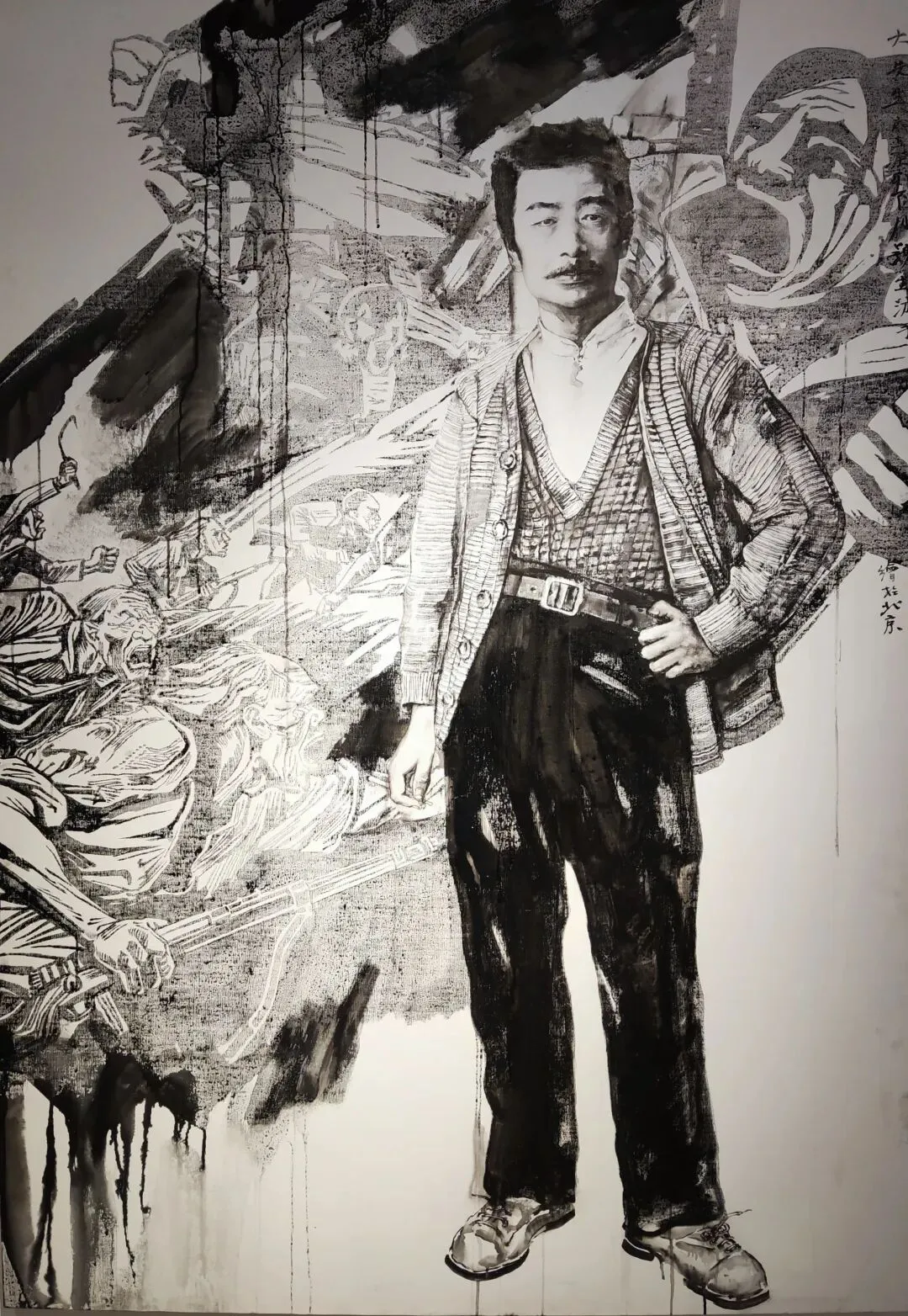 画面中心是身着黑色宽袖深衣、头戴先秦冠冕的秦始皇,面容冷峻威严,眼神锐利,精准还原了史书中“蜂准、长目、挚鸟膺”的帝王形象;以混沌、苍茫的灰调背景,营造出“天地苍茫、唯我独尊”的空间感,呼应秦始皇“扫六合、定天下”的历史伟业,强化了人物的孤独与威严。采用写意写实结合的技法,以厚重的黑白灰为主色调,用粗犷的笔触、斑驳的肌理营造出历史的沧桑感与厚重感,弱化细节、强化气场,凸显人物的磅礴气势。 “醉仙”是中国传统书画的经典母题,核心文化寓意是以醉酒的状态,象征对世俗束缚的挣脱、对自由精神的追求,是文人“出世”思想的艺术表达;常见题材包括“饮中八仙”、“酒仙”,以及道教仙人,这幅作品以三位仙人的形象,是该题材的经典演绎。 该画在线条上以写意减笔为主,用顿挫有力的墨线勾勒人物轮廓与衣褶,寥寥数笔便塑造出人物的动态与神韵,符合“以形写神”的国画理念;用墨干湿浓淡层次丰富,以浓墨绘须发、衣袍,淡墨晕染云雾,墨色变化赋予画面极强的节奏感与立体感;色彩上采用淡彩写意,仅以浅蓝、赭石、淡蓝等少量色彩点缀头巾、酒盏、葫芦,以墨色为主体,既保留水墨韵味,又提亮画面。 鲁迅以全身立像占据画面视觉中心,身着民国时期的针织开衫、格纹马甲、白衬衫,搭配皮带与皮鞋,造型硬朗挺拔,一手叉腰、一手自然下垂,目光坚毅,神态冷峻,精准还原了鲁迅“骨头最硬”的精神气质。以泼墨、线刻结合的手法,刻画了战乱、苦难、抗争的群像场景,包含挣扎的民众、挥舞的武器、破碎的环境,以水墨淋漓的泼洒与淋漓的墨痕,营造出动荡、压抑的时代氛围,与前景鲁迅的沉稳形成强烈对比,凸显其“以笔为刃、唤醒民众”的精神内核。 采用对称式透视构图,以道路为中轴线,人物居于视觉中心,两侧林木对称延伸,既稳定了画面结构,又强化了“归家之路”的仪式感与纵深感。以冷色调的蓝、灰、白为主,搭配暖黄色的阳光与土地,冷暖对比既突出了北方冬日的清冷,又以暖光赋予画面温情,精准传递出“归途”的冷暖交织——旅途的寒凉与归家的温暖。 芭蕉是中国传统文人画的经典意象,象征“清幽、高洁、诗意”,与美人的组合是东方美学的经典母题。这幅作品以油画语言重构这一母题,融合了东方意境与西方写实技法。画面传递出“人景合一”的东方美学,人物的清冷与芭蕉的清幽相互映衬,营造出“林下美人”的诗意氛围,表达了对自然、纯净、自由之美的追求。采用主次分明的虚实构图,前景演员为视觉焦点,背景群像以虚化、层叠的方式呈现,既突出主体,又以群像烘托出社火的宏大场面,营造出强烈的空间纵深感。以云雾状淡墨晕染背景,将人物自然串联,既区分了前后层次,又烘托出民俗活动的热烈氛围感。 锅庄舞,又称“果卓”“歌庄”,藏语意为“圆圈舞”,是藏族最具代表性的民间舞蹈之一。舞蹈时民众围成圆圈,边歌边舞,节奏明快、动作豪放,是藏族人民节庆、聚会时的核心活动,承载着藏族的历史、文化与精神信仰。 这幅作品以写意的笔墨,将这一鲜活的民俗场景定格,成为连接传统与当代、民族与大众的艺术桥梁。 画面以拥挤的人群为核心,营造出热闹、充满烟火气的市井氛围,仿佛是公园、庙会或城市广场的日常场景;上方的网红透明波波球气球是绝对的视觉中心,气球内的卡通图案、彩色装饰在灰调的人群中格外醒目,点明了当代生活的时代特征。整体采用灰调的莫兰迪色系,用柔和的光影塑造空间感,仅以气球的亮色、人物衣物的色彩做点缀,既写实又富有艺术氛围感。 作品捕捉了普通人日常购物的瞬间,将平凡的市井生活升华为艺术,传递出“人间烟火气,最抚凡人心”的温暖主题;背景的店铺招牌、人物的手机等细节,融入了当代生活元素,是当下城市生活的生动缩影;摊主与顾客的笑容、朋友间的闲聊,展现了市井生活中人与人之间的温情与善意。 手掌是人类行动、创造、触碰的象征,代表着个体的力量与存在;串联的线条与小人,隐喻着现代社会中人与人之间无形的社会网络、情感联结与命运羁绊;深浅手掌的对比,象征着可见与不可见、现实与虚拟、个体与集体的二元关系。 每只手掌既是独立的个体,又被网络束缚,探讨了现代社会中个体的自由与归属;网络结构也可解读为权力、规则、科技对人的无形操控,引发对现代性的反思;红色背景象征着生命、激情与冲突,手掌的张力传递出人类在世界中的挣扎与抗争。 采用侧逆光(夕照),让山体向阳面呈现暖金色,背阴面形成深邃阴影,强化了太行山的立体感与雄浑感;山体用厚重、奔放的笔触塑造岩石肌理,树木与建筑用细腻笔触刻画细节,刚柔并济。以暖黄、赭石为主色调,搭配天空的冷蓝与河流的冷色,冷暖对比鲜明,既还原秋日氛围,又突出视觉焦点。 作品精准捕捉了嶂石岩地貌的核心特征:赤壁丹崖、层状断崖,是河北太行山的标志性视觉符号,具有强烈的地域辨识度;以“山水倒影”的对称构图,诠释了“天人合一”的东方美学,将太行的雄奇与湖水的柔美融为一体,展现了自然的和谐之美;停泊的游船作为人文元素,为山水增添了生活气息,传递出“山水为邻,岁月安然”的意境,是当代人对自然诗意生活的向往。 以“瑞雪”为意象,传递“瑞雪兆丰年”的吉祥寓意,同时展现太行山冬日的雄浑壮美,彰显燕赵大地的山河气魄;画