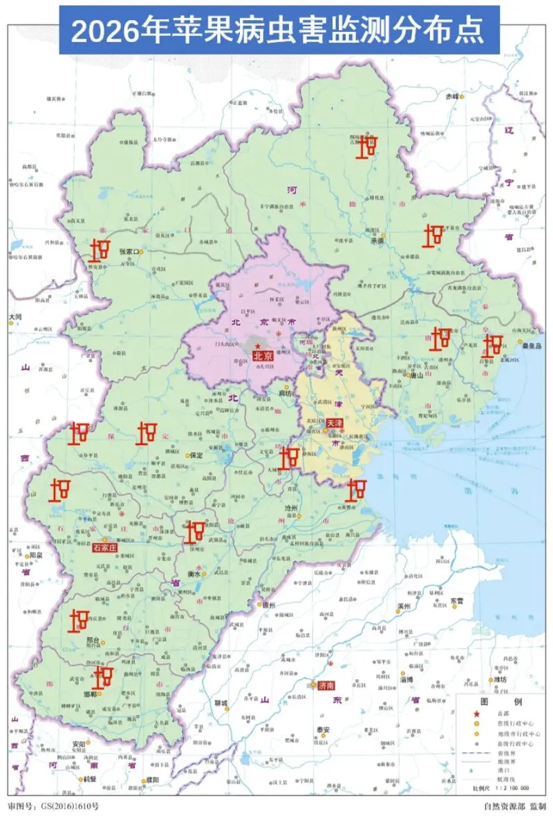 2026年3月26日至4月3日,为有效破解我省苹果病虫害监测预警薄弱、防控精准度不足等问题,河北省农林科学院石家庄果树研究所果树植保研究室圆满完成覆盖全省11个地级市的苹果病虫害监测网络标准化布点,共建成14处标准化监测点,重点围绕金纹细蛾、梨小食心虫等6种重大病虫开展系统监测,通过实地踏查摸清各地主要病虫发生底数,完善全省苹果病虫害预警防控技术体系,为科学防控、精准施策提供坚实数据支撑。