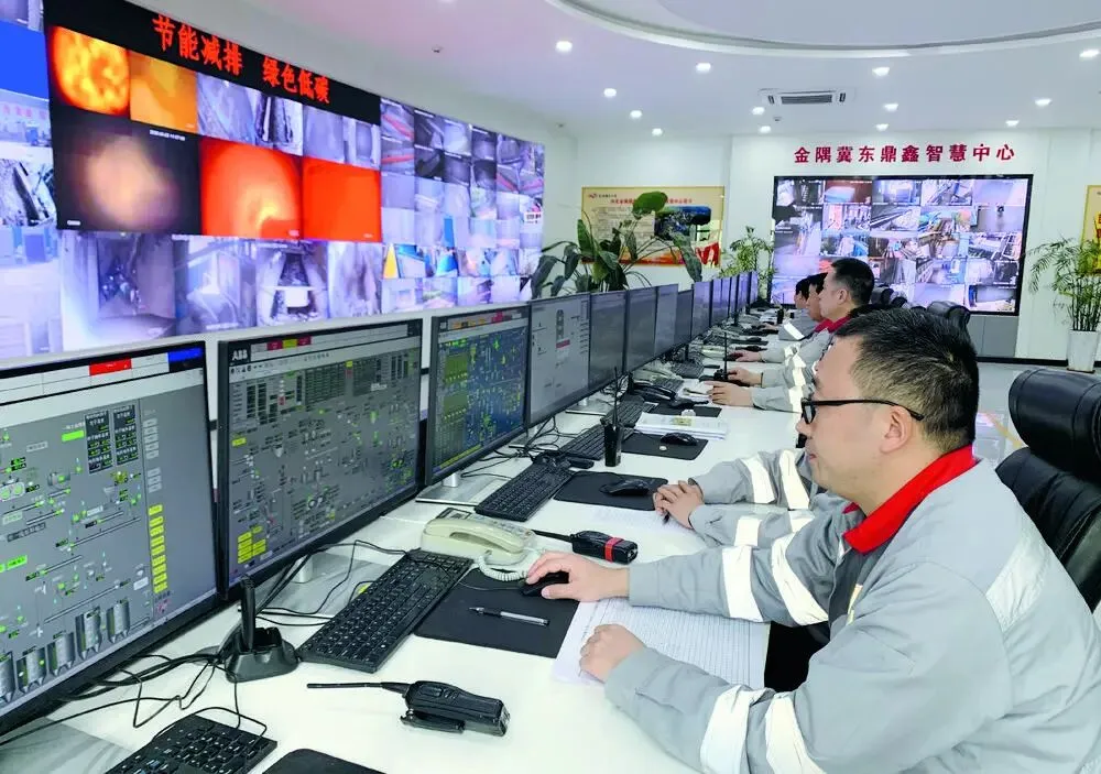 河北金隅鼎鑫水泥有限公司的工作人员正在通过智能专家控制系统,精准监控生产运行情况。本报首席记者 张震 摄