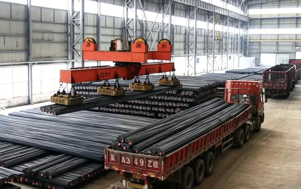 4月8日,敬业集团库房内,一批螺纹钢正在装车准备运往雄安新区。肖建国摄