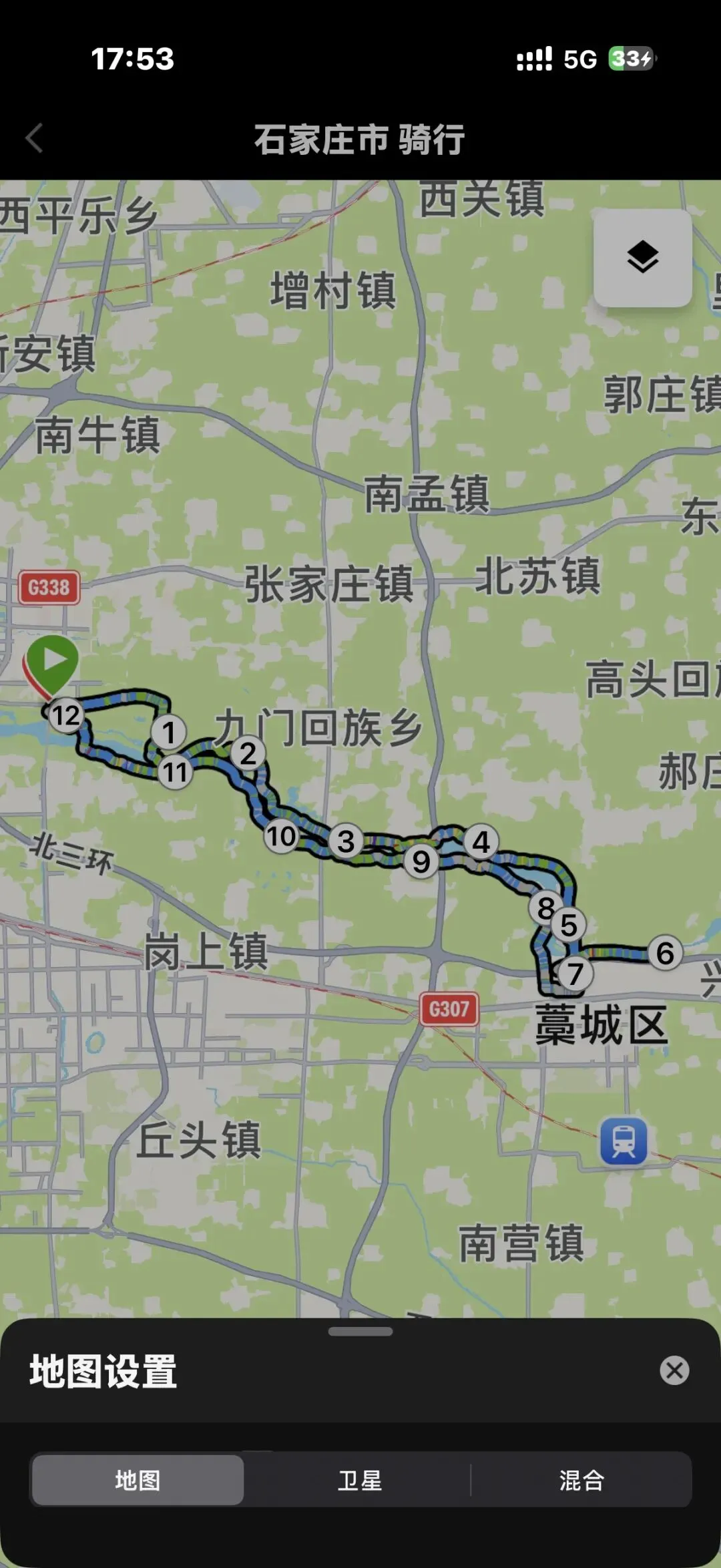 从正定新区的滹沱河北岸一直向东,骑28公里后沿X006道过桥向东骑够30公里返回,滹沱河南线藁城城区段施工,只能继续向南进入藁城区后向西继续骑回河边。