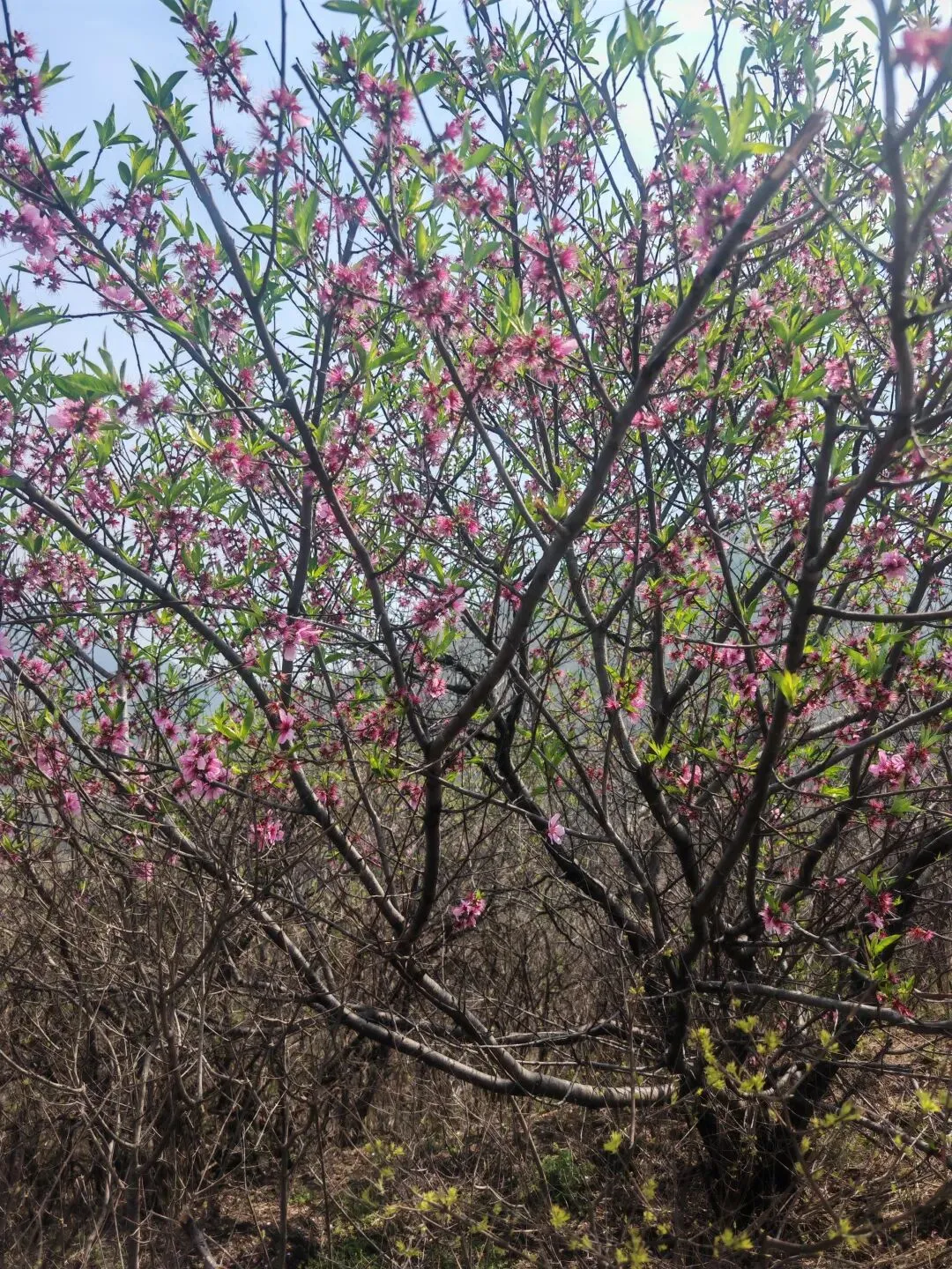 现在春暖花开,但是现在去晚了一个星期,桃花和杏花都已经谢了,杏树已经结了小果子,桃花正落英缤纷。