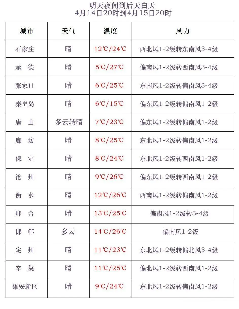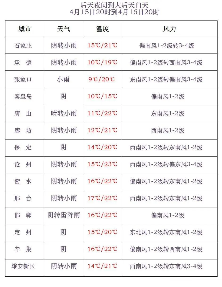 河北各城市具体预报