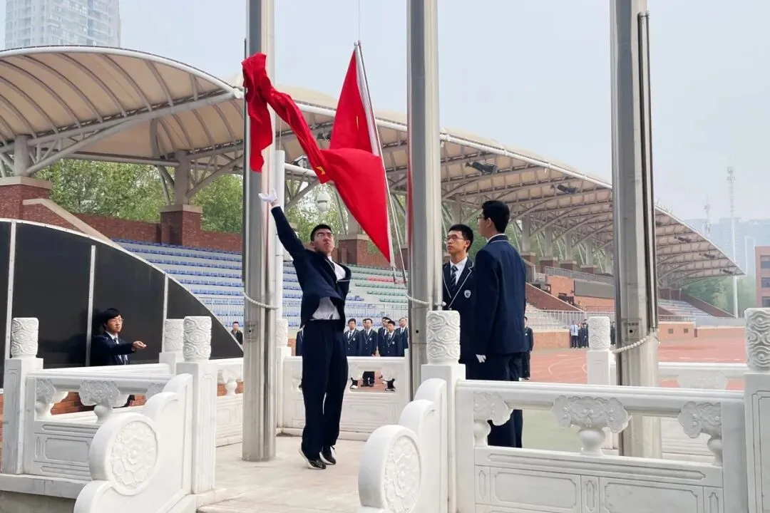 清晨沐光,国旗招展。4月13日清晨,石家庄二中举行了庄严而隆重的升旗仪式。高一21班(班主任 刘国洋老师)担任国旗班,龚咏霖、刘梓琪同学主持。