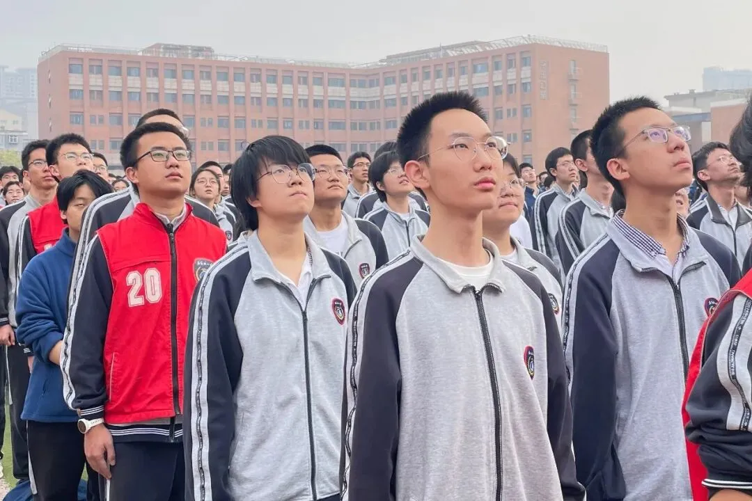 伴随着雄壮的国歌,鲜艳的五星红旗冉冉升起。全体师生肃立致敬,齐声高唱国歌,满怀对祖国的崇高敬意与无限热爱,嘹亮的歌声在校园上空回荡。