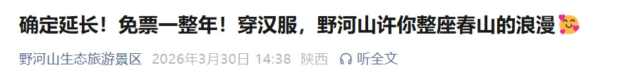 🌈免票政策:穿汉服,免门票!从春天一直免到年底