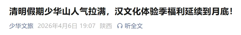 🌈免票政策:穿汉服即享门票+往返观光车+往返索道全免!(此活动只针对散客,最终解释权归少华山景区所有