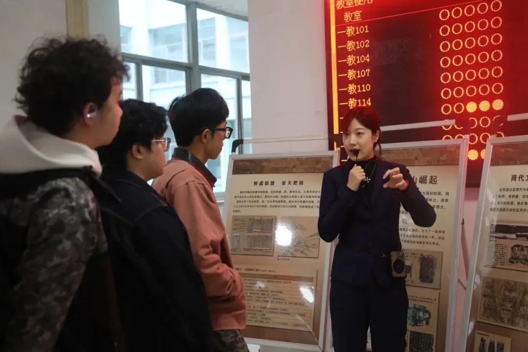 4月8日,为弘扬石家庄深厚的历史文化底蕴,增强学生对本土历史的认同感与文化自信,交通运输学院联合石家庄市博物馆在本部第一教学楼大厅举办"石家庄历史文化巡展进校园"活动。本次活动以《石家庄历史文化陈列展》为核心,精选展览内容引入校园,通过移动展板和现场讲解,为同学们带来沉浸式历史文化体验。