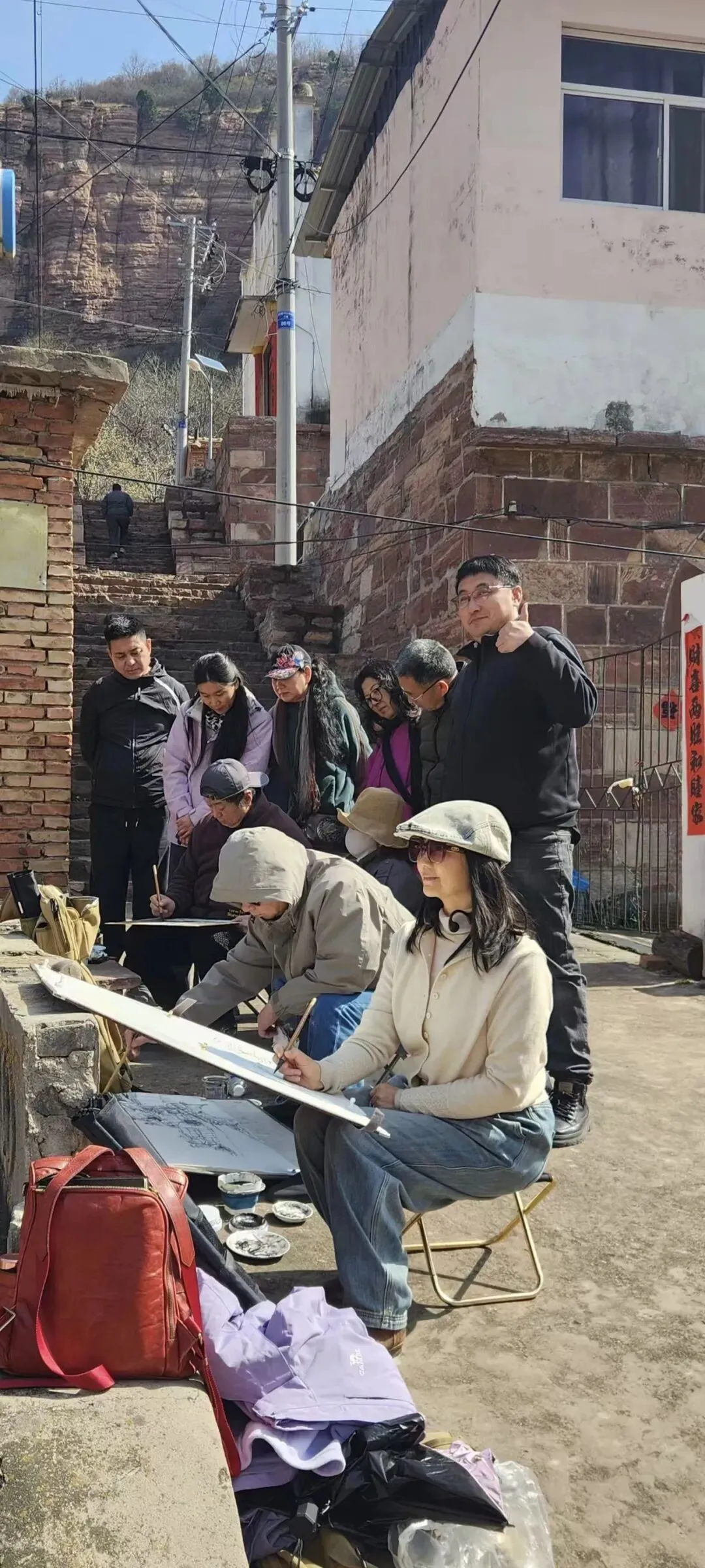 当天下午采风团到达嶂石岩。采风期间,艺术家们先后深入苏家台、悬梨沟、大红寨、小红寨、黄庄、永福台、嶂石岩、石人寨等当地多个特色村落,领略太行山脉的雄浑壮阔,感受太行腹地的自然生态与淳朴乡土风情,捕捉创作灵感、积累创作素材。