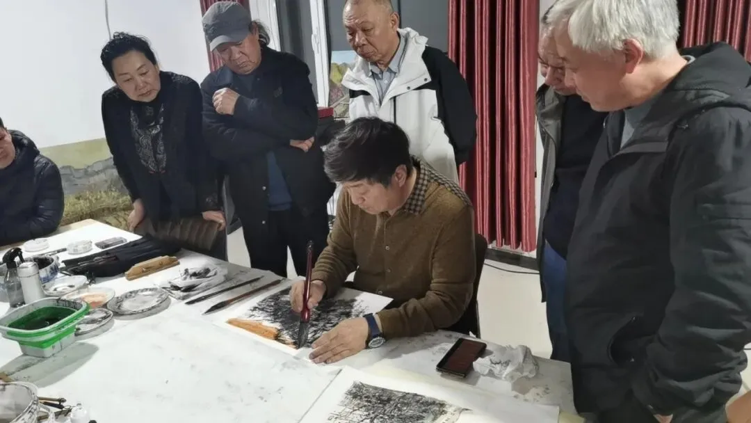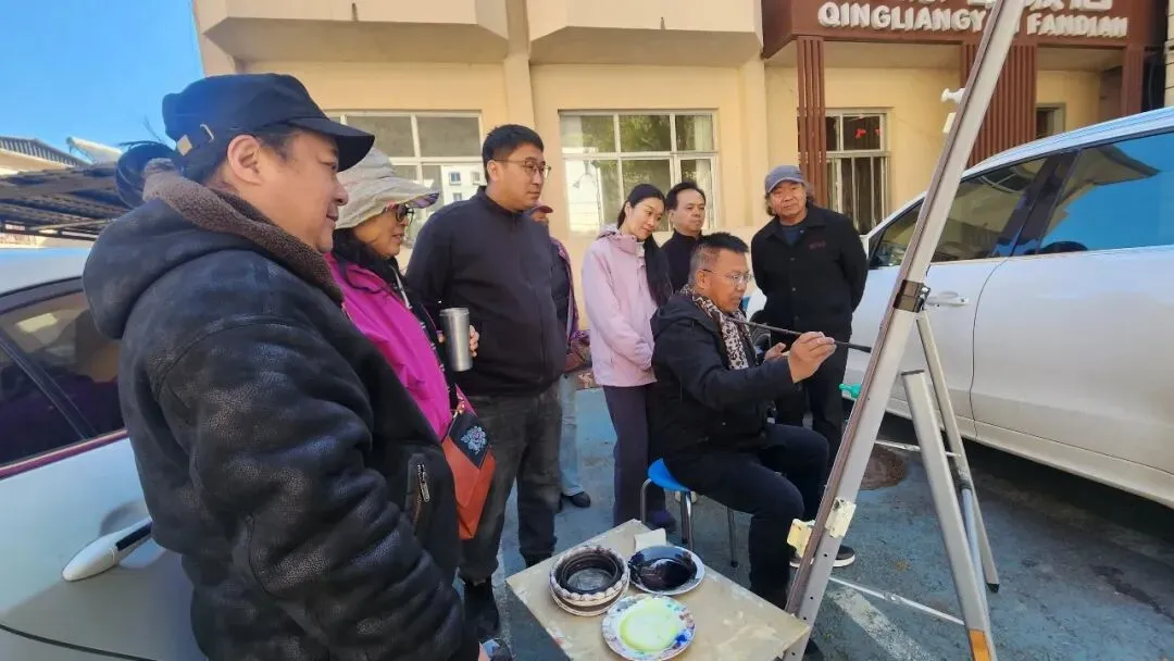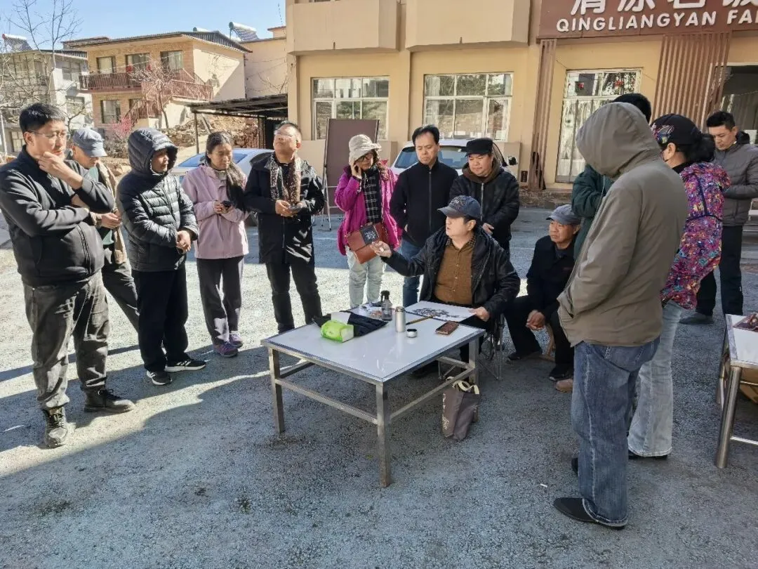 在写生创作现场,冯建法以“太行人家”为主题示范作画,并结合创作实践与大家交流。他提出希望广大美术工作者要坚持深入生活、扎根人民,深挖山水背后的红色文脉与精神力量,紧扣“十五五”发展新征程,让艺术创作扎根时代、贴近人民,不断创作出有筋骨、有内涵、有地域特色的更多优秀美术作品。