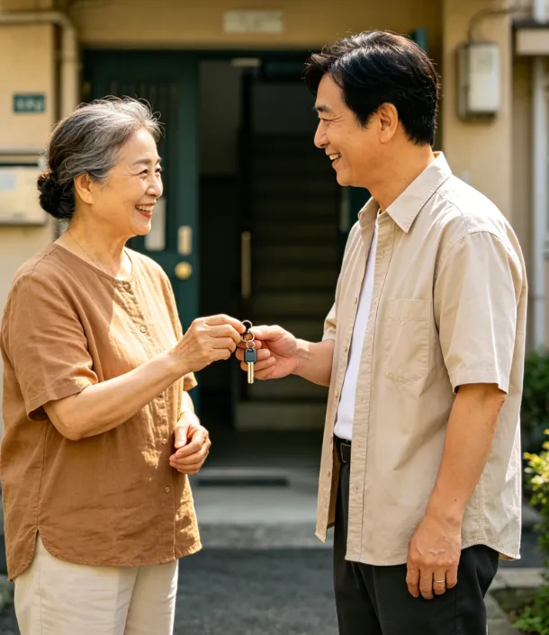 这是最安全、最省心的方法!就像图片里这样,咱们可以找一个平时关系好、靠谱的邻居,把一把备用钥匙交给对方。