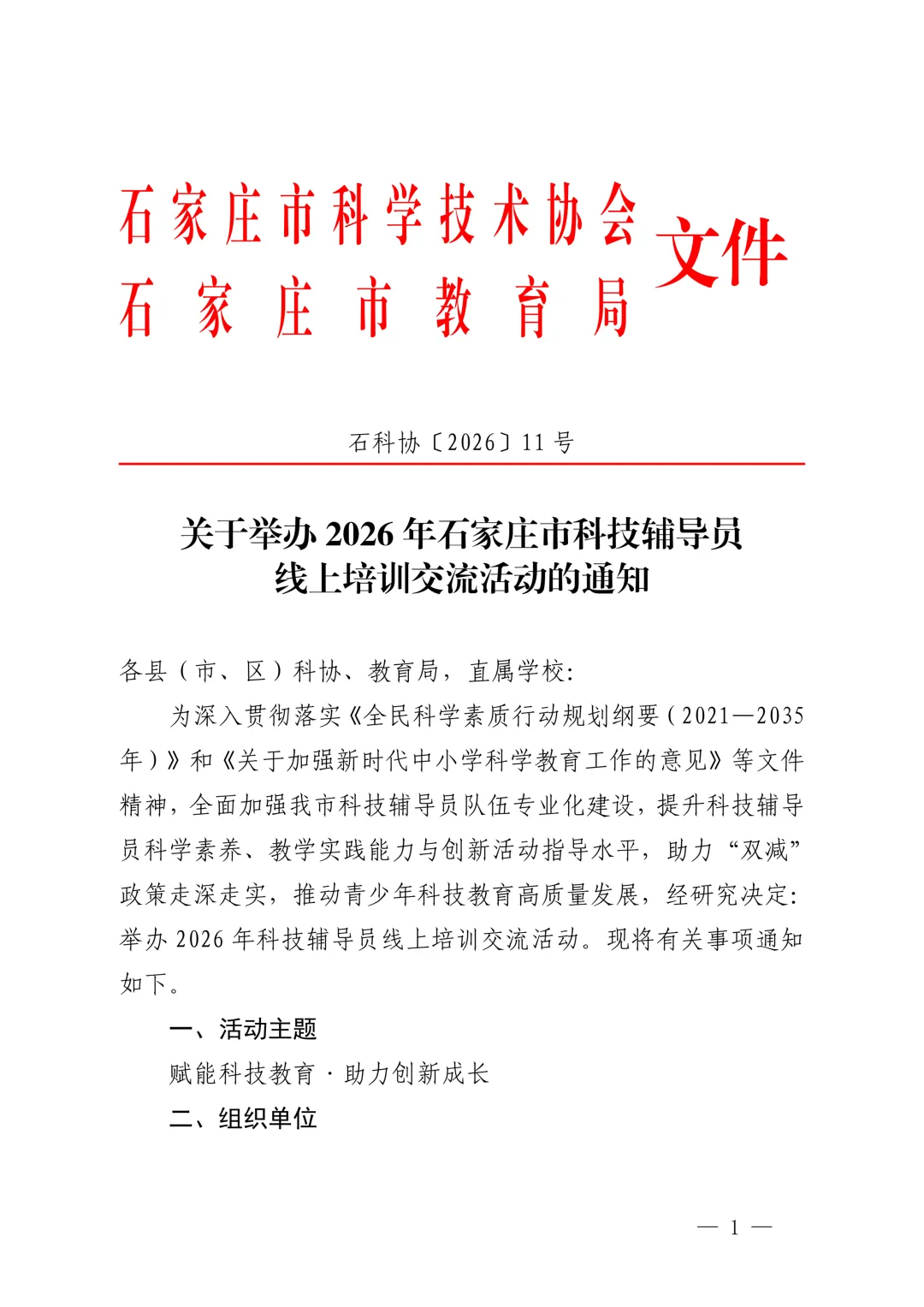关于举办2026年石家庄市科技辅导员线上培训交流活动的通知.pdf