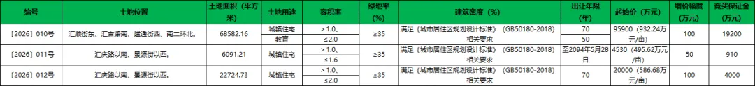 近日,石家庄市公共资源交易中心发布国有建设用地使用权挂牌出让公告,涉及〔2026〕010-012号地块,均为城镇住宅用地。总出让面积97398.1平方米(约146亩),总起始价12.043亿元。
