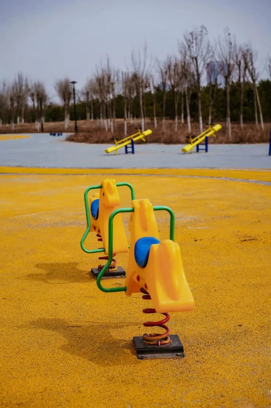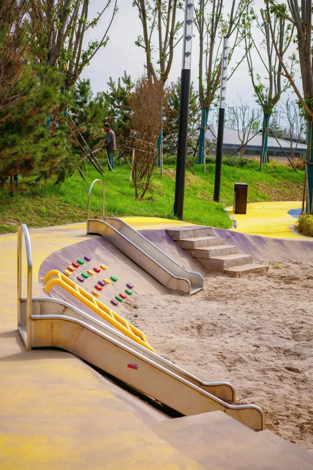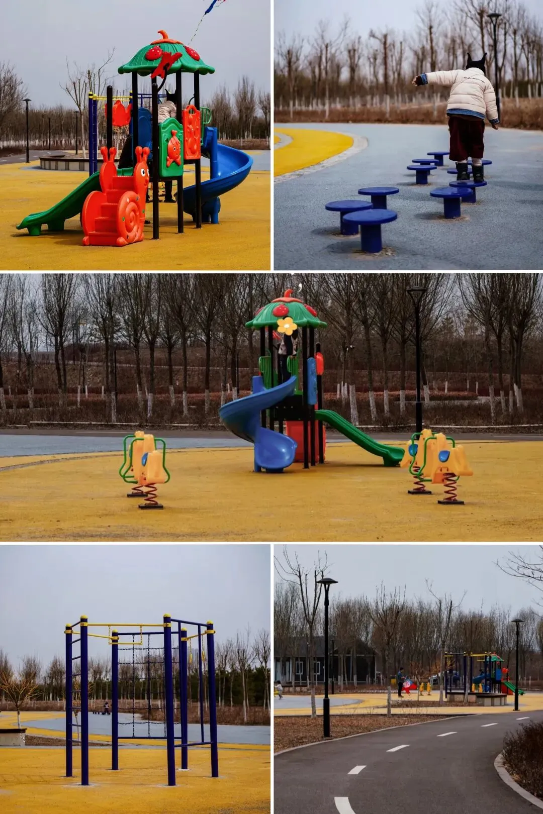 这个乐园不大,小滑梯,跷跷板,几个摇马,一个爬架和一组地桩。但是乐园所在的这一片区域面积非常大,停车位很多,有公共卫生间。周边多片松林,大片的红瑞木,很适合自带装备安营扎寨消磨半天。大地春回,桃红柳绿,找个微风不燥的天气,大人们煮煮茶聊聊天,孩子们玩玩车撒撒坏,想想就惬意。