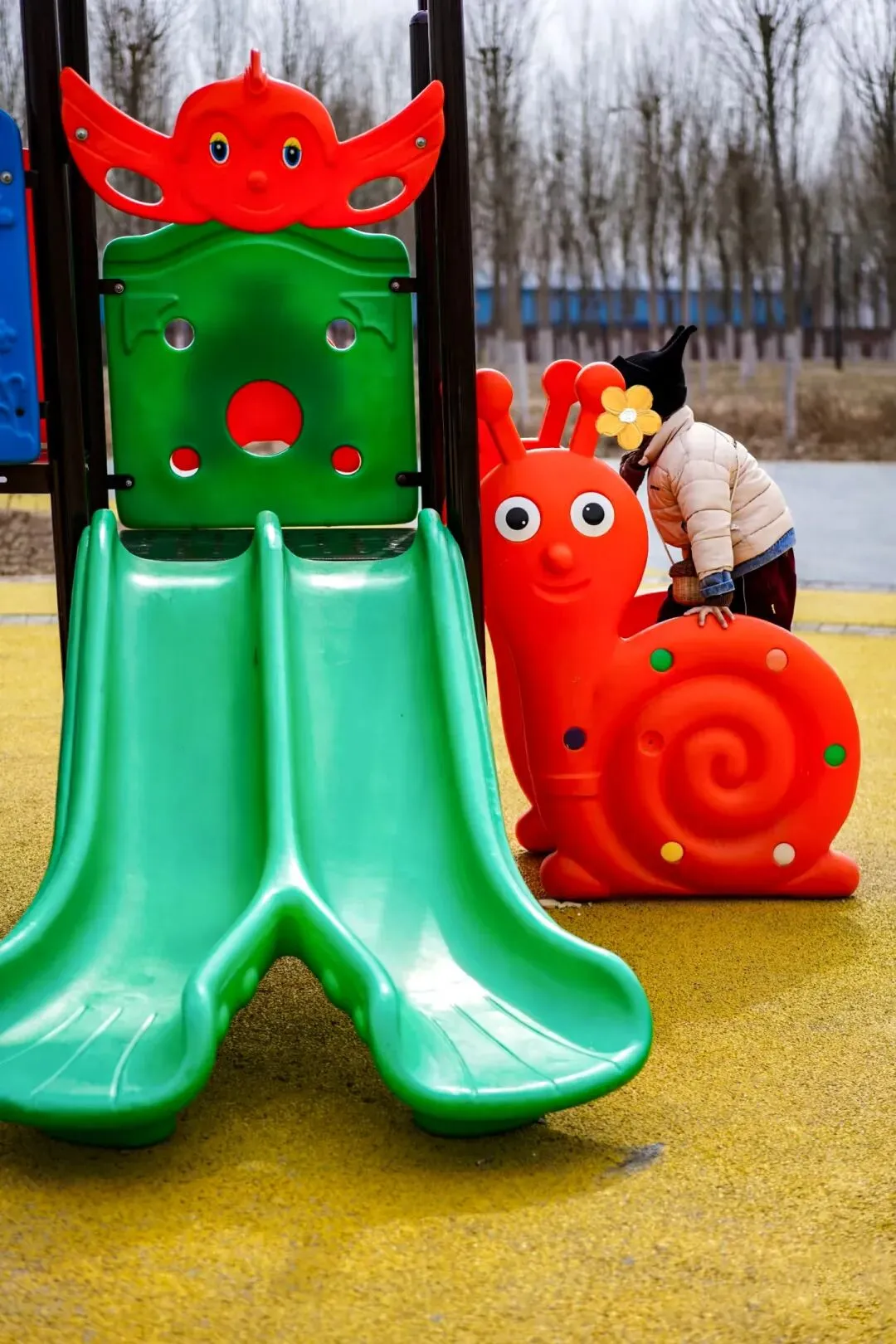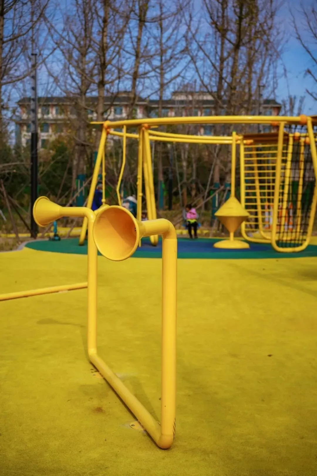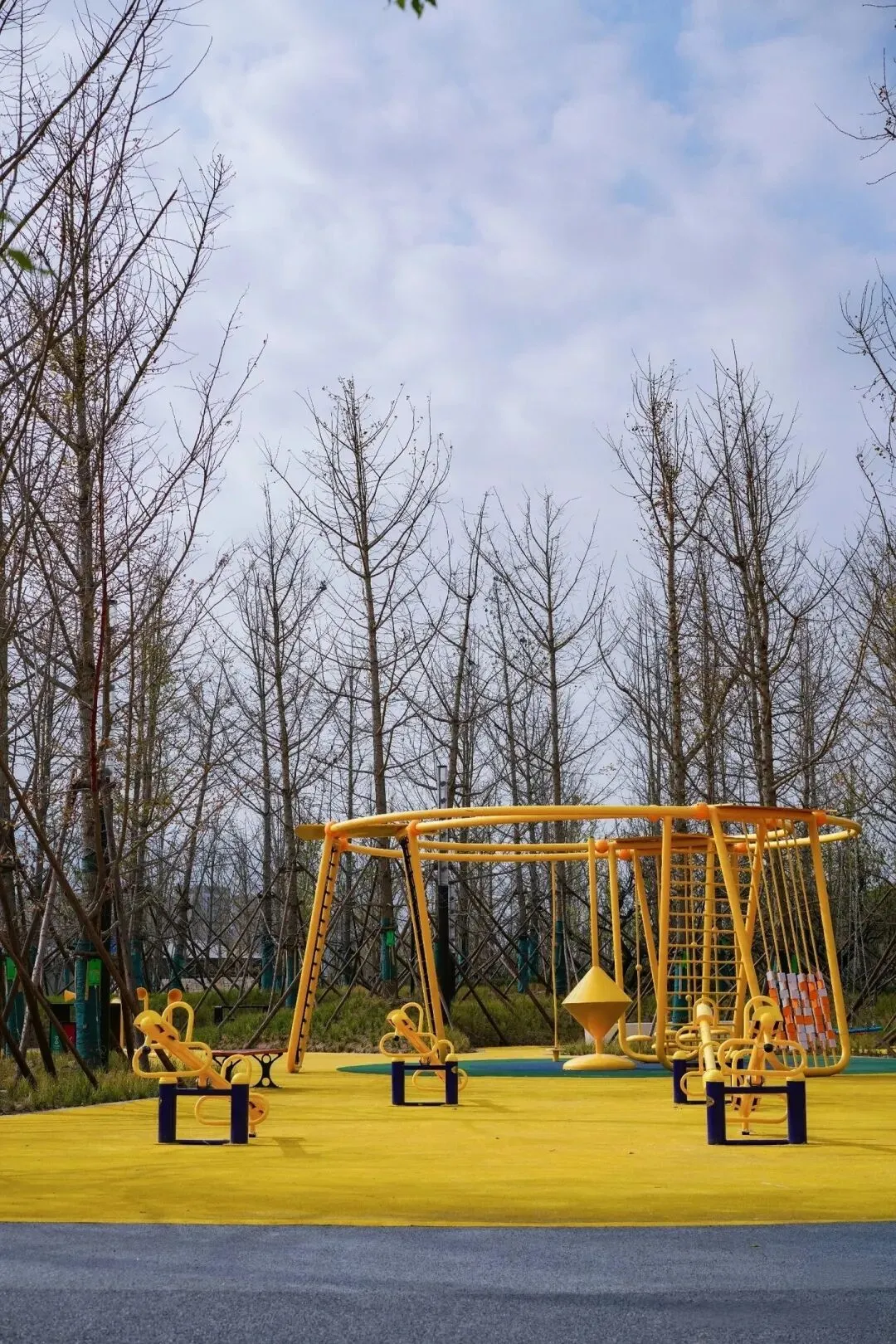这个乐园不大,小滑梯,跷跷板,几个摇马,一个爬架和一组地桩。但是乐园所在的这一片区域面积非常大,停车位很多,有公共卫生间。周边多片松林,大片的红瑞木,很适合自带装备安营扎寨消磨半天。大地春回,桃红柳绿,找个微风不燥的天气,大人们煮煮茶聊聊天,孩子们玩玩车撒撒坏,想想就惬意。