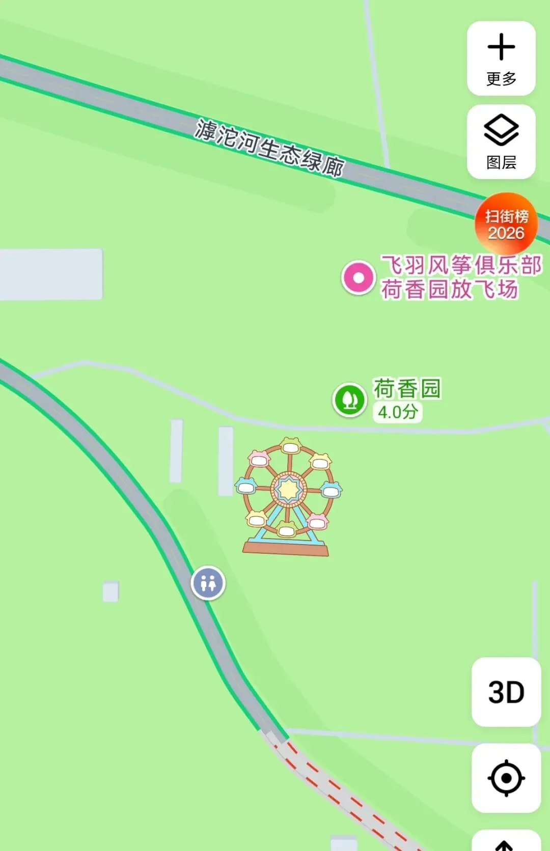 🚩➌定位:荷香园游乐园,太行大街向东滹沱河南岸,差不多隔河与童趣园对望。导航“荷香园”或“飞羽风筝俱乐部荷香园放飞场”到达时会看到往河边的岔路,路口路标箭头分别往卫生间和荷香园,乐园在卫生间北边空地上。