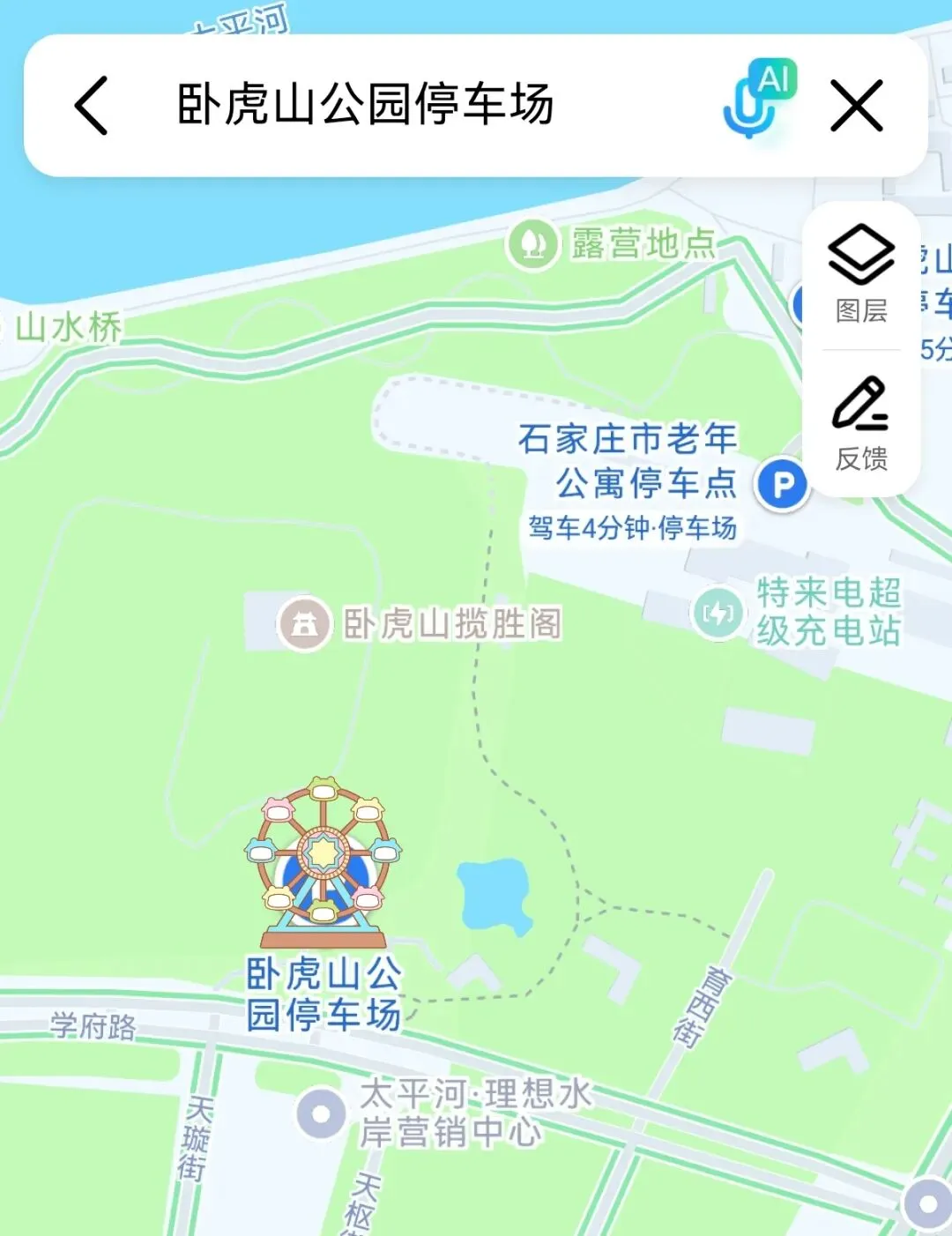 🚩➐卧虎山儿童乐园,导航“卧虎山公园停车场”,不在山水桥的河边,在学府路边。