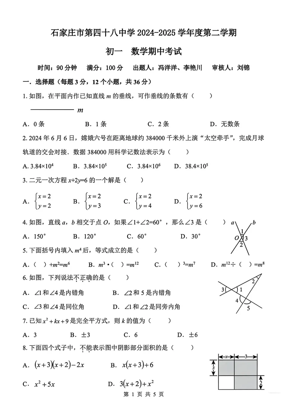 【七下期中】2024-2025学年石家庄市44中七下期中数学试卷(文末附下载链接)