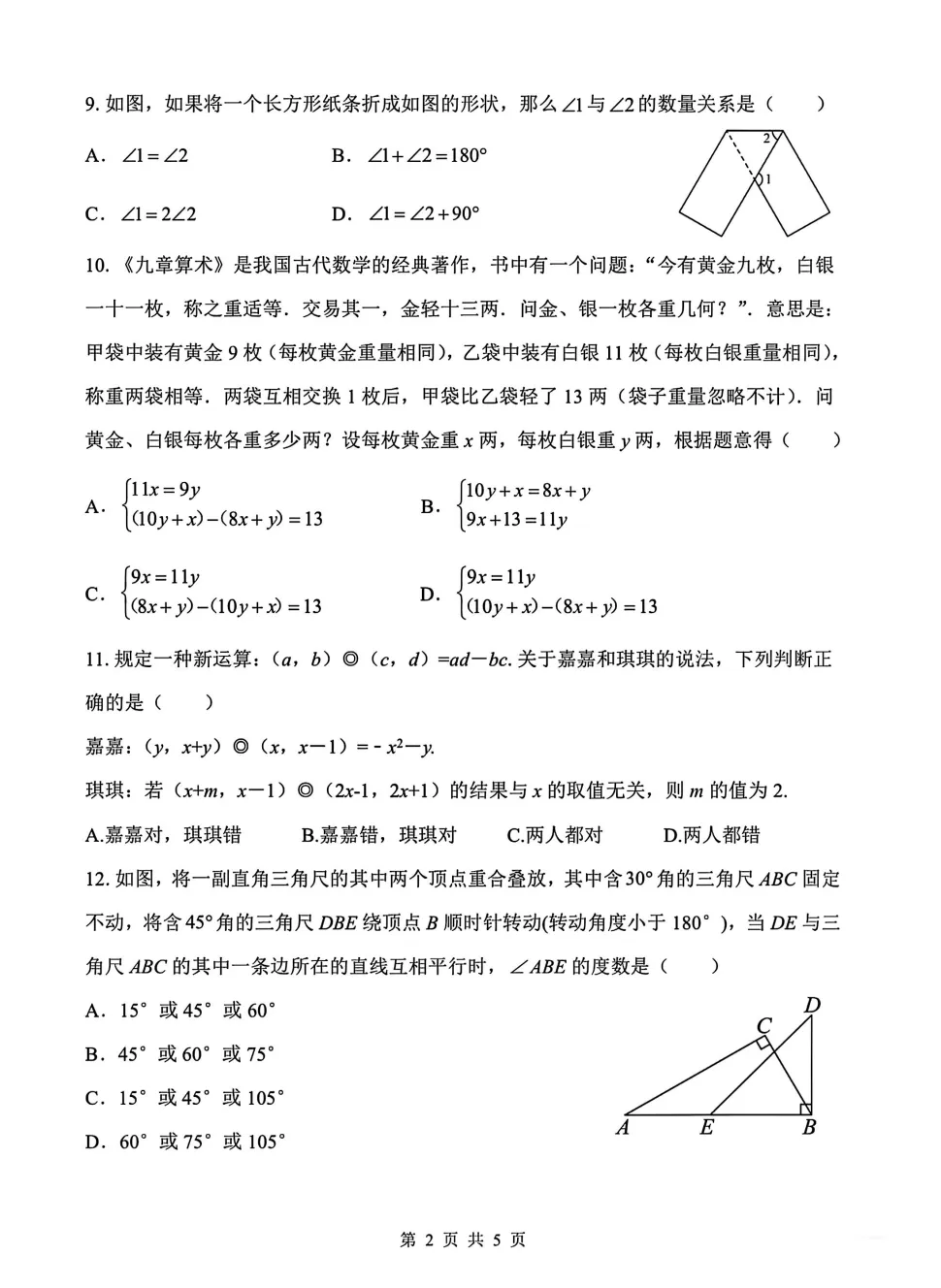 【七下期中】2024-2025学年河北省七年级第二学期第二阶段质量评价数学试卷含答案.(冀教版)(文末附下载链接)