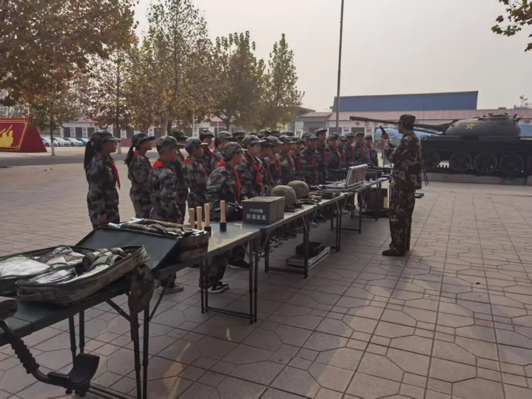 以英雄为灯塔,在榜样引领下厚植家国情怀。除了日常的军事基础训练和环境浸润,学校把国防教育搬进课堂邀请退役军人、现役军人、老党员开展国防公开课。战斗英雄史光柱、胡国桥、毛羽亮等英模人物多次走进校园,用亲身经历讲述烽火岁月,让爱国情怀在孩子们心中生根发芽。贾雪阳将军更是亲力亲为,多次为参赛同学进行国防赛前培训,勉励孩子们从小树立保家卫国的志向。国防教育校外辅导员还给同学们讲述军功章背后的故事,让一枚枚奖章承载的荣誉与记忆转化为鲜活的德育教材。在文化浸润与实践中激发共鸣。学校充分利用红领巾广播站,每天定时播放《少先队队歌》《强军战歌》《打靶归来》等歌曲,让国防教育真正融入学生日常;组织国防主题大合唱,《我们是共产主义接班人》《团结就是力量》等经典歌曲响彻校园,激发了学生的集体荣誉感和爱国热情。每到清明节、烈士纪念日、建军节、国庆节这些特殊节点,学校还会组织孩子们走进西柏坡纪念馆、平山团纪念馆、烈士陵园等红色教育基地,开展祭扫烈士墓、重走突围路、军营开放日等主题活动,让孩子们在实地体验中触摸历史、感受国防力量,真正把“国防”两个字刻进心里。