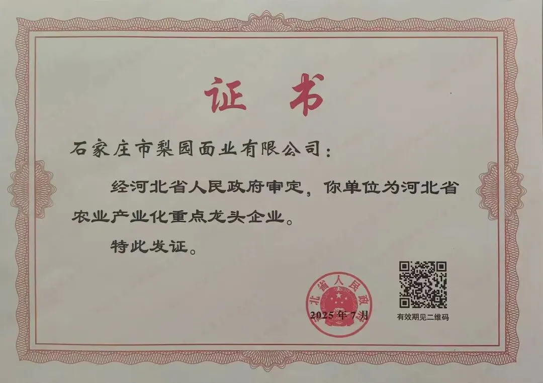 在党组织的关怀下,2024年成立了党支部,扩大了公司的社会影响力,加强了公司与政府的沟通和联系,为公司的进一步发展创造了良好的社会环境。2024年5月通过上级部门的支持,公司又进行了数字化转型,对生产流程、管理系统及基础设施的全面升级,直接促进了生产效率提10-15%,能耗降低5-10%,以及整体运营成本降低约12%,公司的经济效益也日益剧增。今年2月,公司由石家庄市农业产业化重点龙头企业,升级为河北省农业产业化重点龙头企业。2025年,梨园面业为了更上一层楼,实行5S管理制度,这一举措使公司更加制度化、规模化。