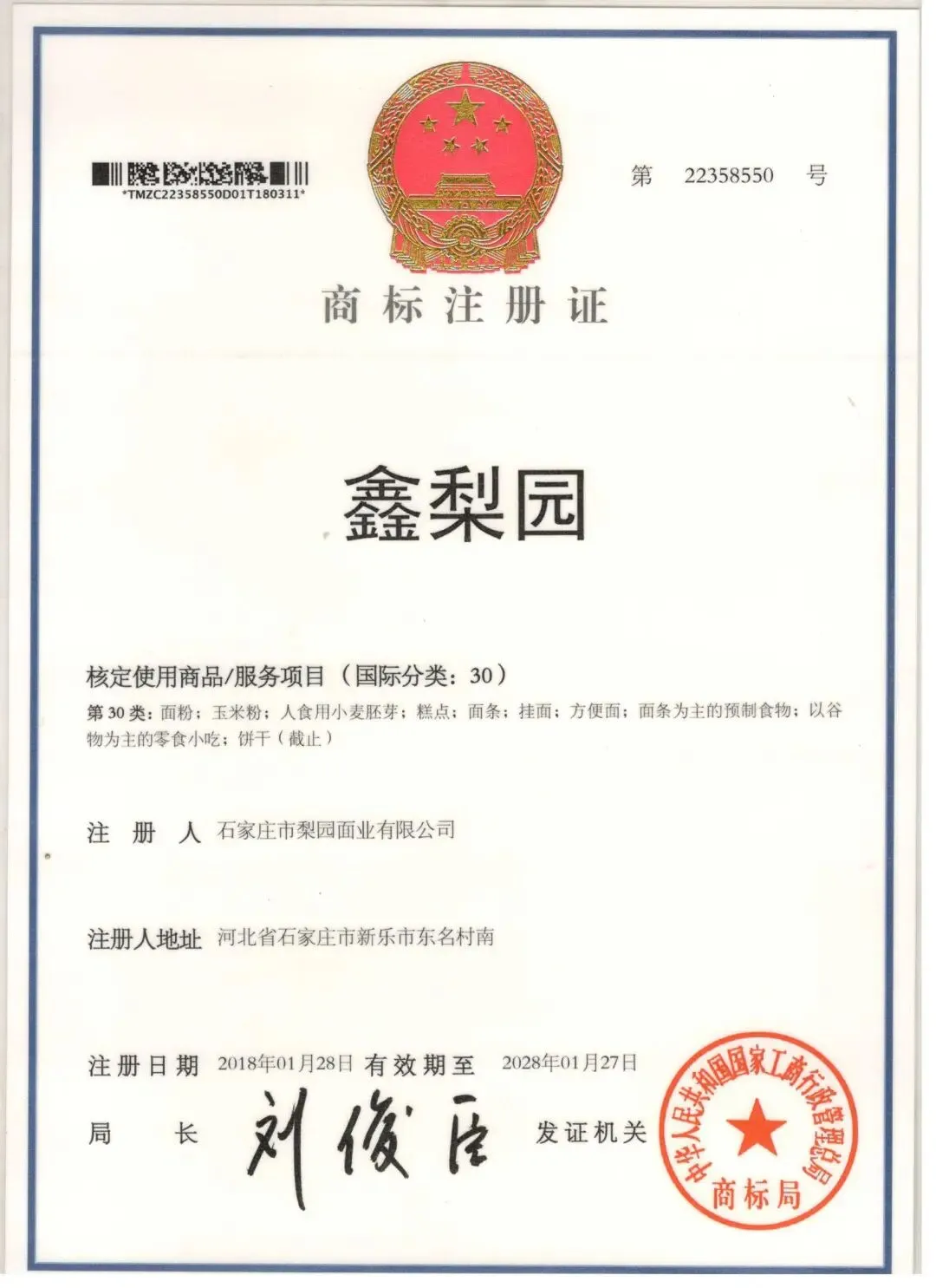 石家庄市梨园面业有限公司成立于2009年8月6日,注册资金500万元,坐落于新乐市东名村村南,是集小麦收购、生产、销售于一体的专业化面粉生产企业,自成立以来,公司的业务不断增大,在2016年投入了300万元进行产品升级和设备升级。“十四五”时期,随着人们生活水平的提高,对面粉的质量要求也越来越高,为顺应现代化市场的需求,公司在2020年又投入投资1亿元资金,建成了一条年产18万吨面粉的生产线项目,总占地18000平方米,位于新乐市马头铺镇内营村西,公司投入大量资金进行新产品研发,2022年已正式投产,此建设由原来的单一品种逐步开发了多类产品,且保证高品质的质量,从而满足广大市场的需求。