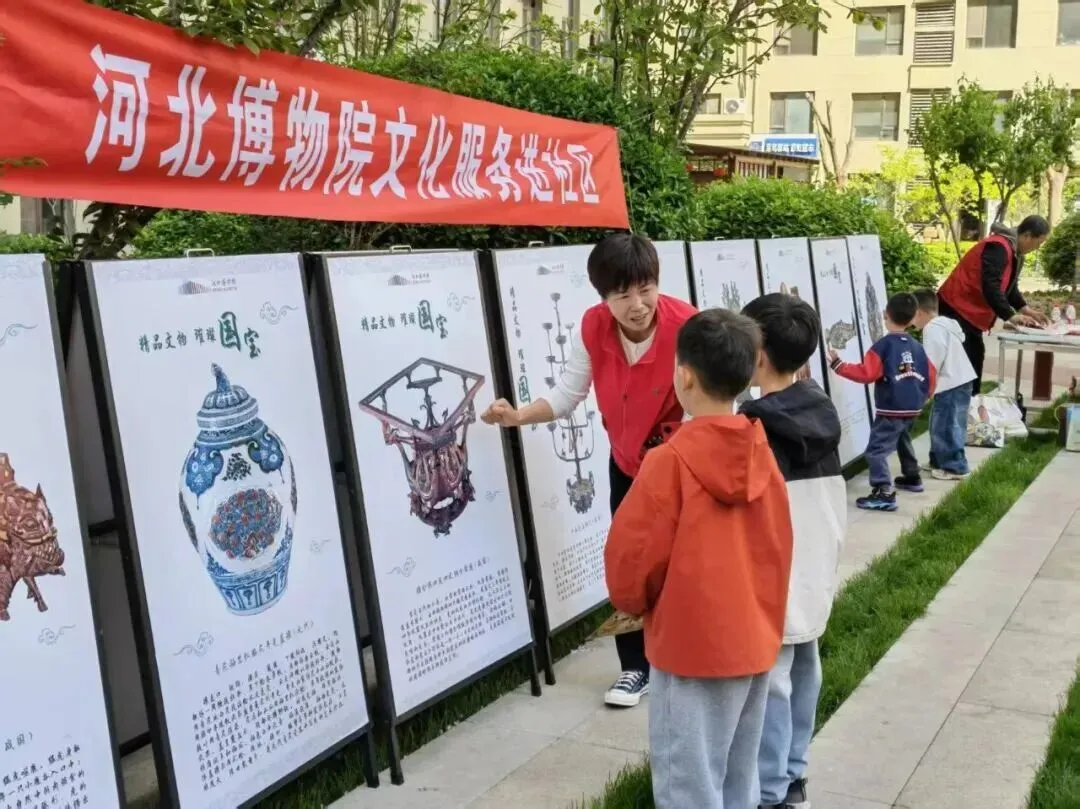 活动现场,一块块图文并茂的展板有序陈列。河北博物院的工作人员化身“文化讲解员”,用生动通俗的语言,解读每一件文物的前世今生:揭秘长信宫灯作为“中华第一灯”所蕴含的古代环保智慧,讲述金缕玉衣由2498片玉片与千余克金丝编织而成的匠心传奇,让居民们在聆听中“阅读”文物背后的历史故事,在感悟中传承中华优秀传统文化。