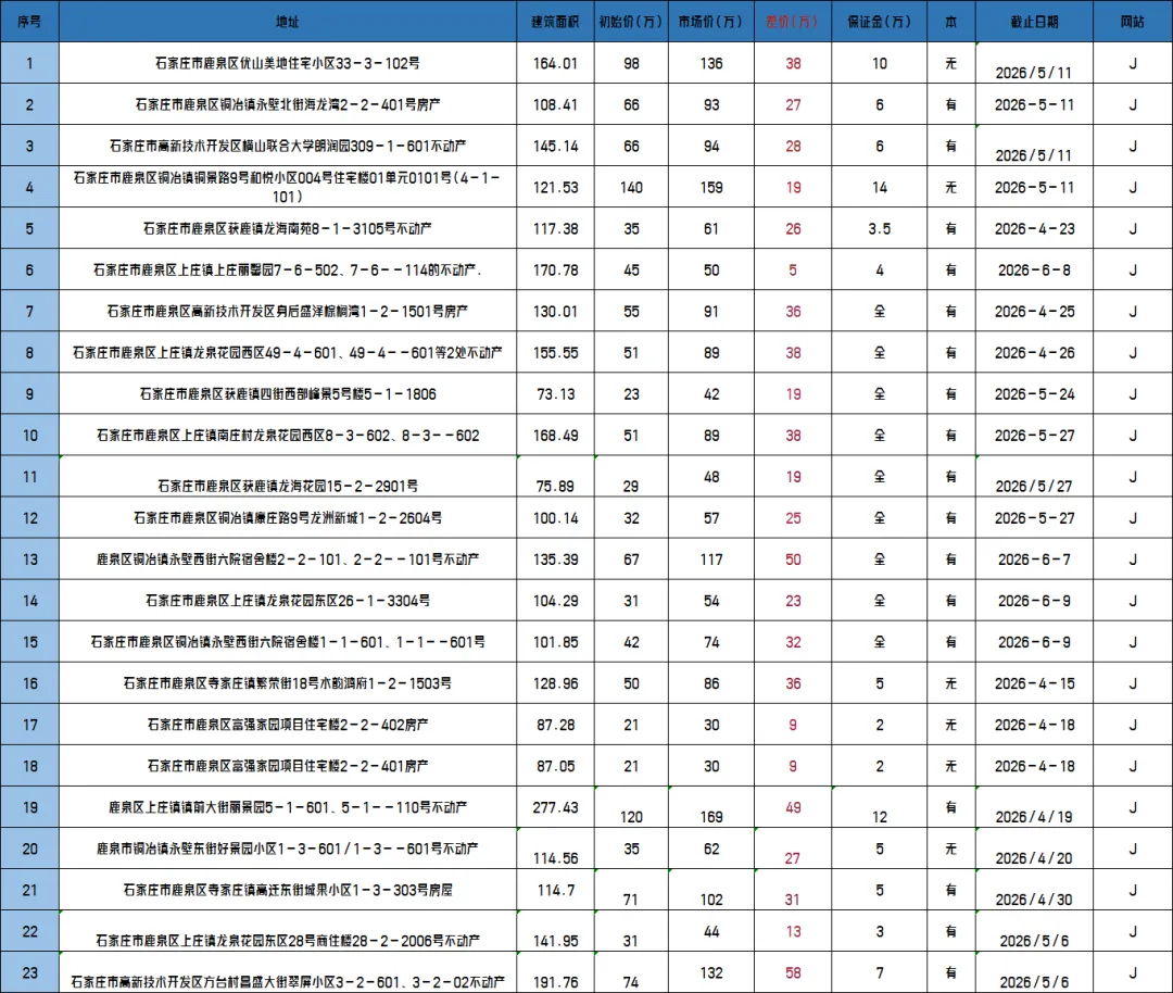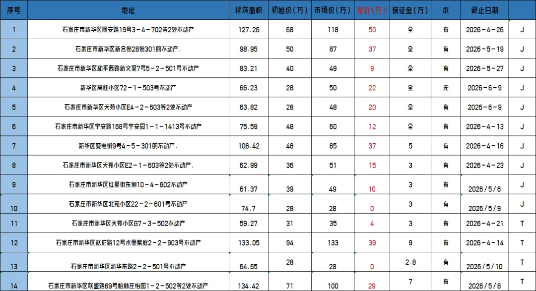 >石家庄最新法拍房源20260414