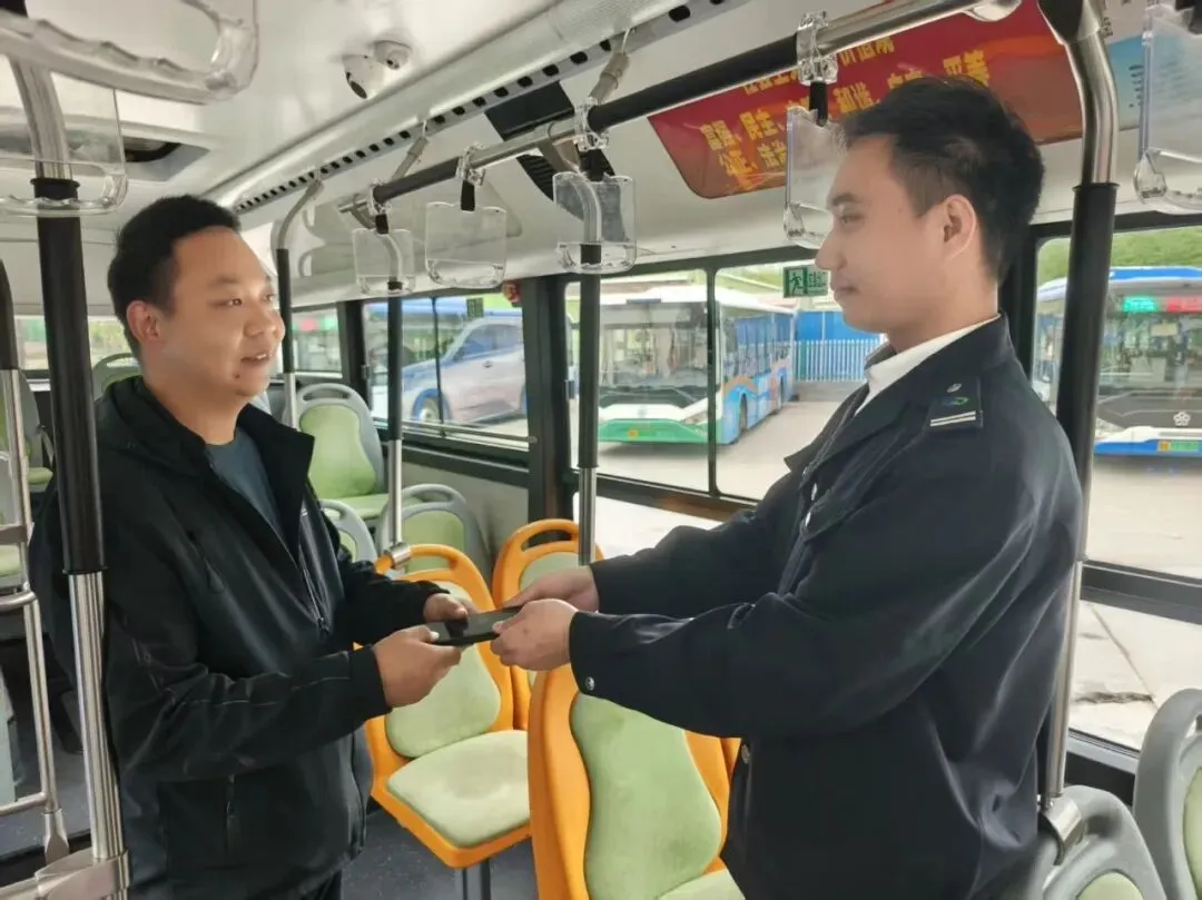昨日13点30分左右,320路驾驶员白子航完成上午营运任务,在收车进行例行安检时,于公交车厢内座椅夹缝处发现一部遗落的手机。他第一时间将手机交到线路长王胜利处妥善登记、保管。另一边,失主发现手机丢失后,立即拨打公交服务热线96599求助。热线接线员将信息转接至320路公交场院,王胜利随即与失主取得联系,告知其手机已被妥善保管,可前往辛玛王国公交场站领取。不久后,失主男乘客赶到场站,王胜利仔细核对手机信息、确认身份无误后,将手机归还。拿到失而复得的物品,男乘客激动不已,连连向公交工作人员表达感谢。