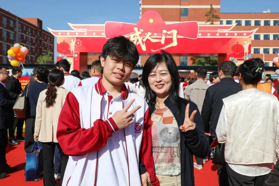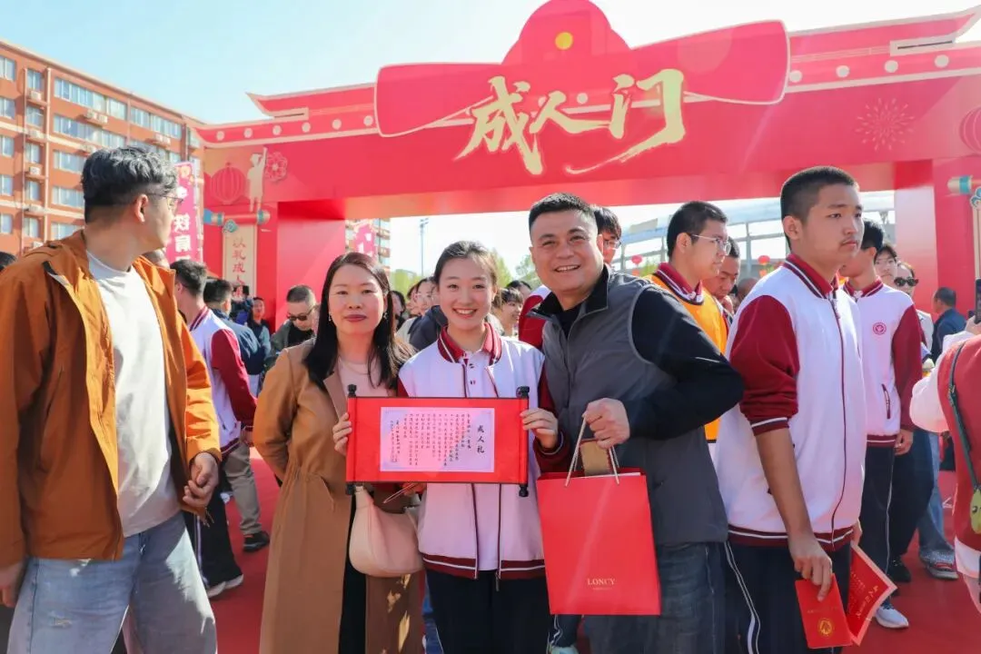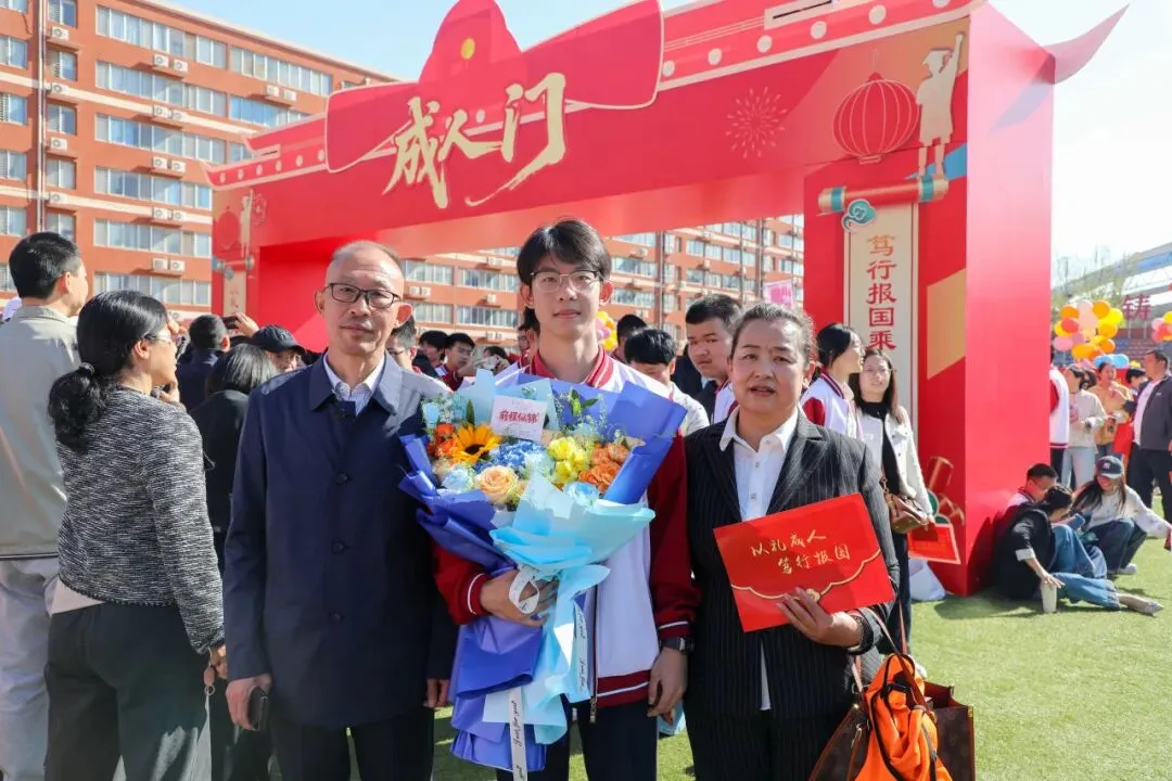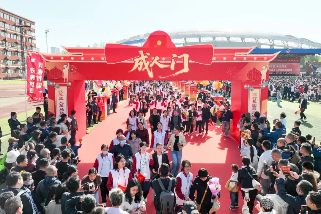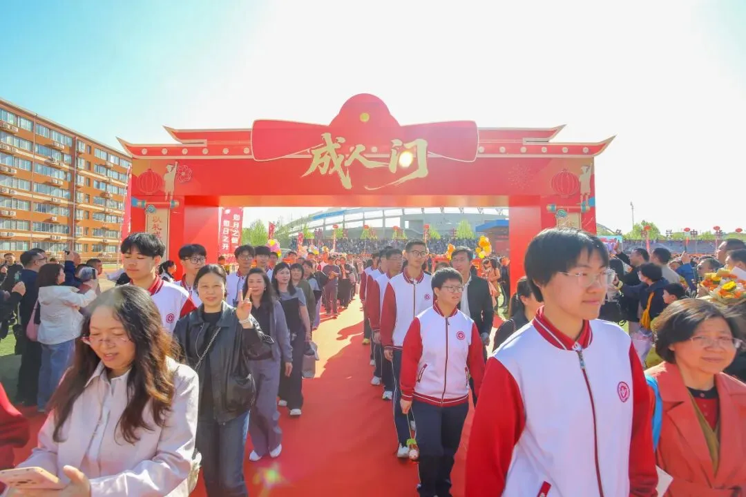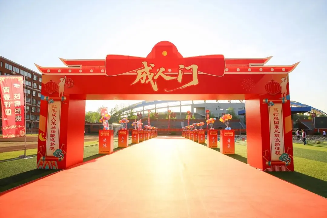 清晨,学子与家长携手步入会场。红毯铺就时光隧道,彩球迎风摇曳,成人门巍然矗立,18门礼炮整齐列阵。红旗猎猎,条幅高悬,校园里处处洋溢着庄重、热烈又温情的青春气息,一场关于成长、责任与梦想的盛典,在此拉开帷幕。