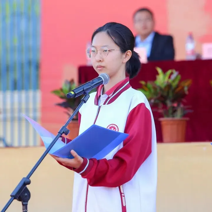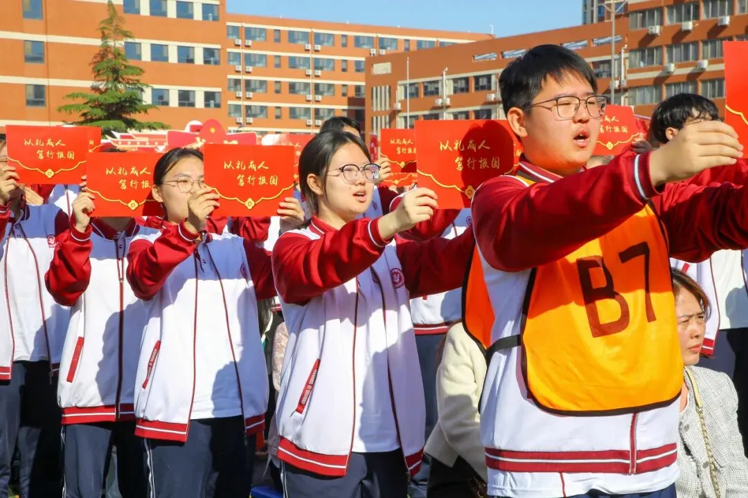 在赵叶凡主任领誓下,全体高二学子庄严宣誓。“泱泱中华,塑我龙魂;巍巍精中,铸我精神”的誓言响彻全场,少年们以赤诚之心立成人之志,以昂扬之姿赴时代之约,字字千钧、掷地有声,尽显新时代青年的赤诚与担当。