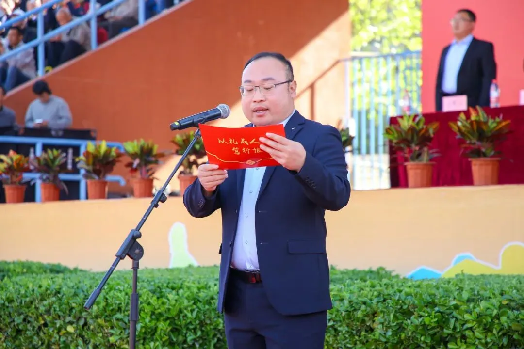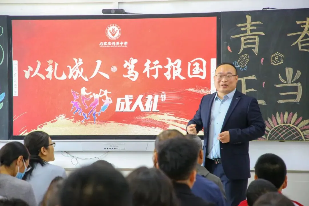 石家庄精英中学副校长、高中部执行校长马东星深情致辞,勉励学子以成年为新起点,怀感恩之心、守孝亲之义,以奋斗为青春底色,以拼搏迎战高三,把个人理想融入家国大业,用实干践行“强国有我”誓言。他以先辈青春壮志勉励学子,求真学问、练真本领,以奋进之姿成就自我、回报家国。全场学子目光如炬,心中激荡着奋进的力量。