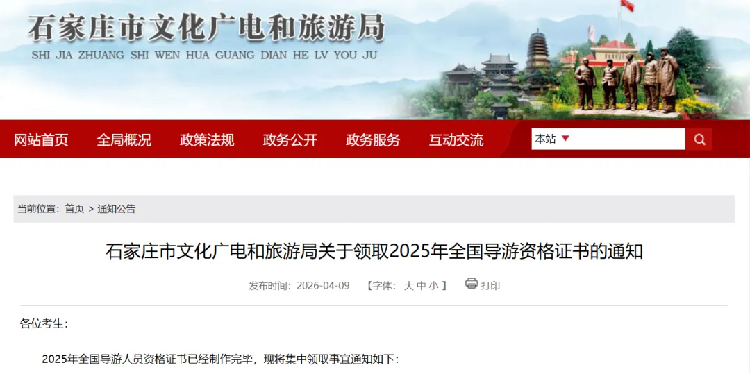 @河北(保定、石家庄、雄安)同学,可以领取导游资格证啦!