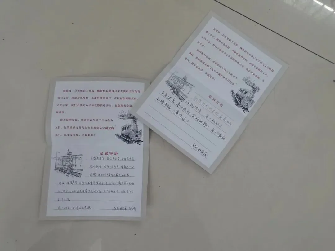 我的爱人之前就在咱们阳泉供电车间工作,现在在昔阳供电车间。前不久,我的侄子刚入路太原局车务系统,经常会电话联系我爱人,叔侄俩聊起铁路行业的事情总是话语不断。作为旁听人,我能真切感受到爱人对工作的热爱,听他对侄子的叮嘱话语中,真切感受到了安全生产的重要。每一次操作,每一次巡检都连着万家灯火,作为家属,我会给足他精神支持,照顾好我们小家,让他放心工作。