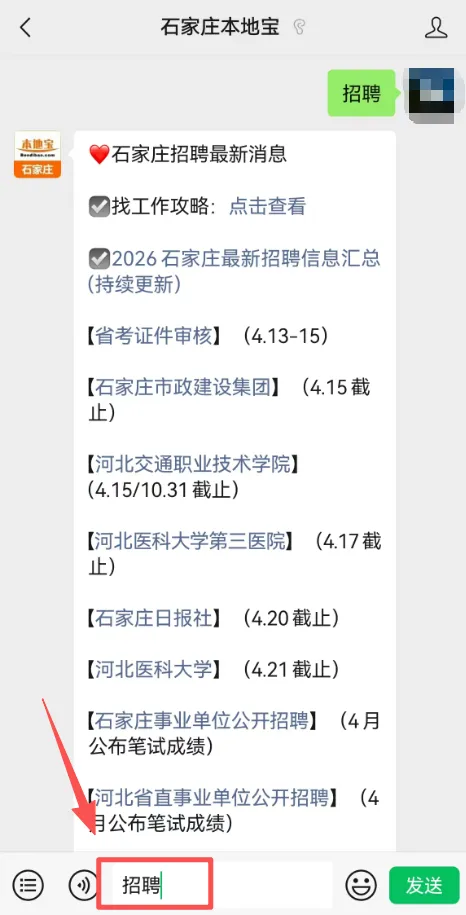 回复【招聘】查询石家庄招聘最新消息