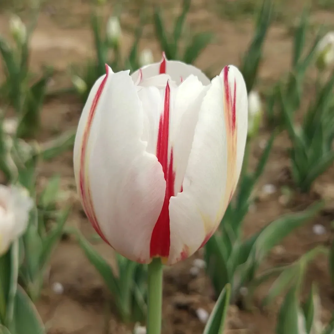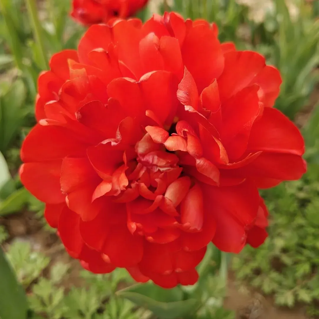 红的黄的、粉的白的,紫的橙的,58个品种织成了巨型彩虹毯。特别是那抹珍稀的黑紫色,神秘又高级;重瓣郁金香更离谱,长得像牡丹又像大菊花,堆堆层层的,真的看一眼心都要化了!