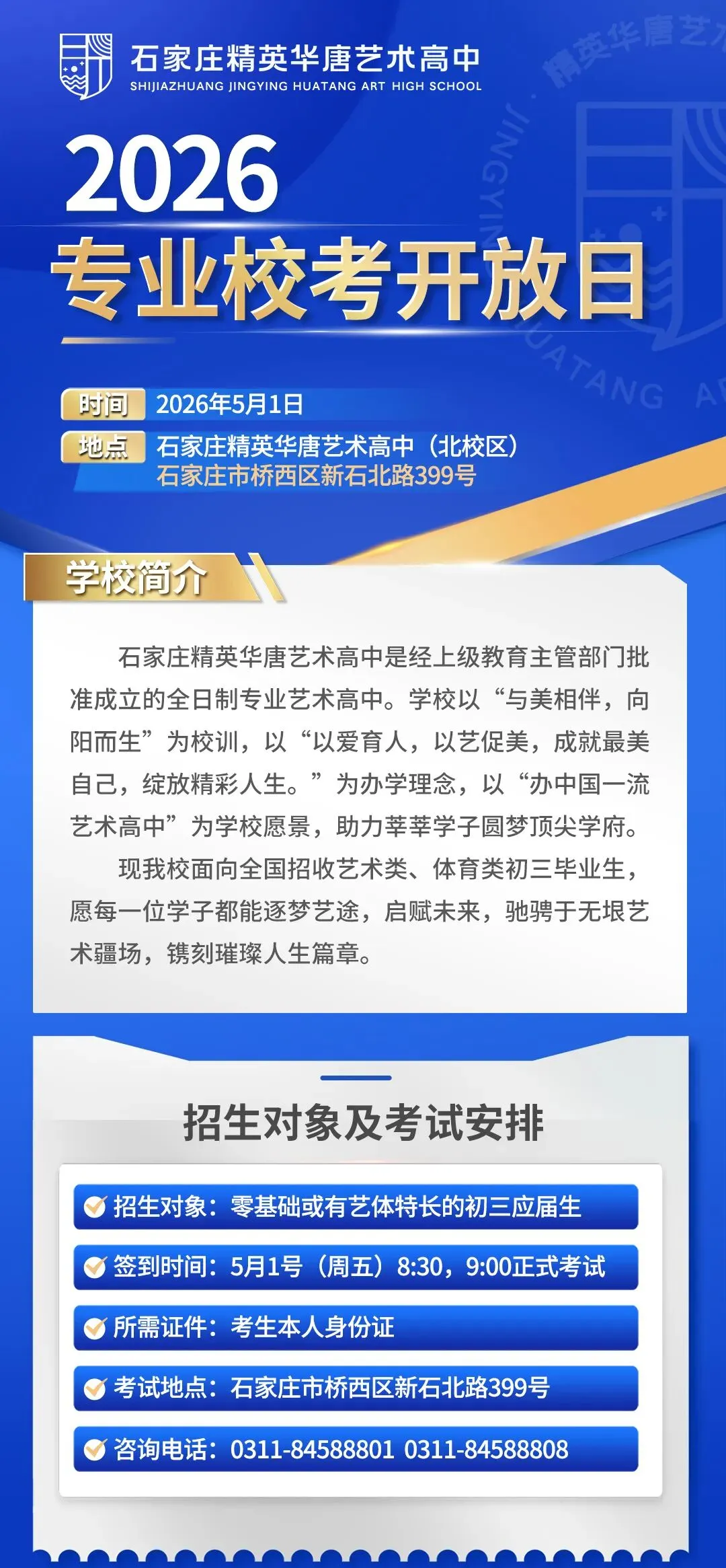 石家庄精英华唐艺术高中专业校考五一开考&开放日等你来