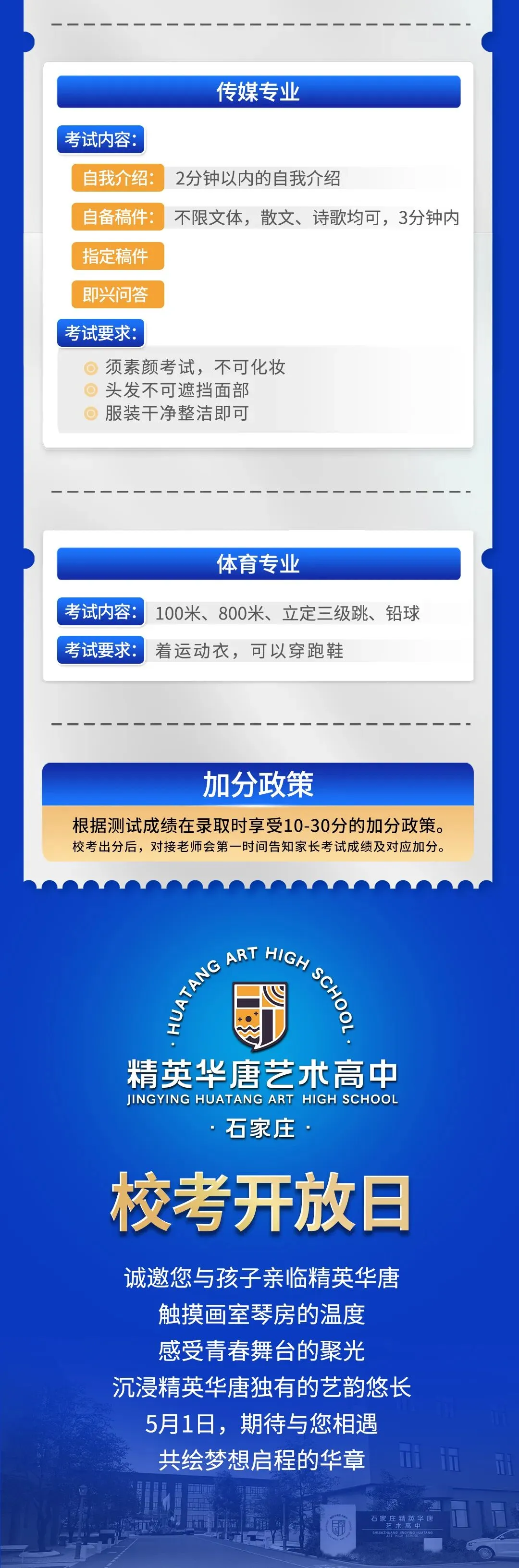 >石家庄精英华唐艺术高中专业校考五一开考&开放日等你来