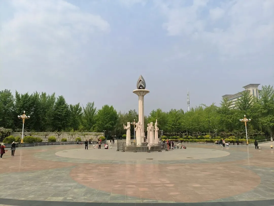 其实,公园里的空地面积很大,中心位置就是一个沉降式广场,广场中间是一组雕像,没有走到近处去看,不知道是什么寓意,有知道的可以在评论区告知一下。