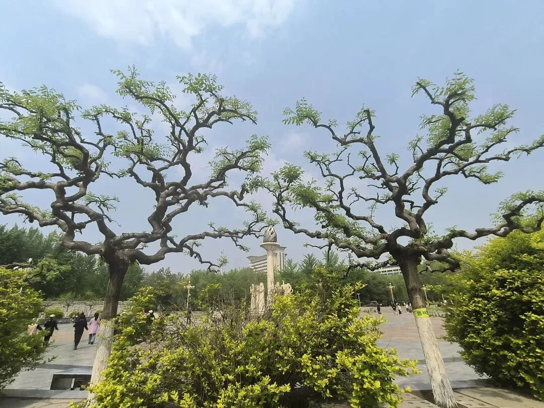 其实,我觉得环绕在沉降式广场台上的一圈龙爪槐更别致有趣。