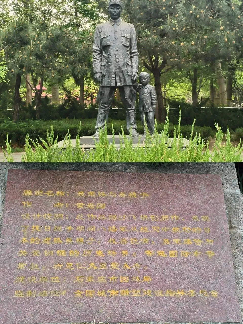 在西清公园北门的西侧,有一雕塑坐落在路口,其名为“聂荣臻与美穗子”,这是为纪念当年聂帅救助日本遗孤的故事而雕塑的,旨在“寄意国际和平常驻、祈愿仁义至爱永存”。
