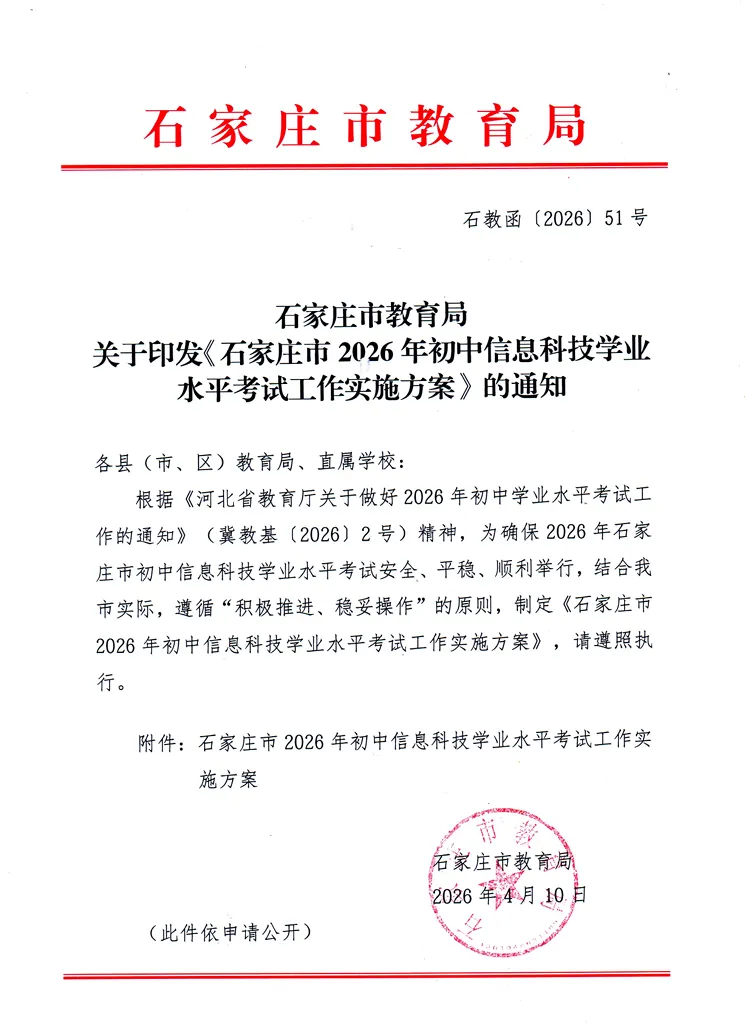 (二)未参加过石家庄市初中信息科技学业水平考试(或“石家庄市初中信息技术学科升学考试”),也没有河北省内其他地市八年级信息科技学业水平考试成绩,并且拟于2026年毕业的初中学生。