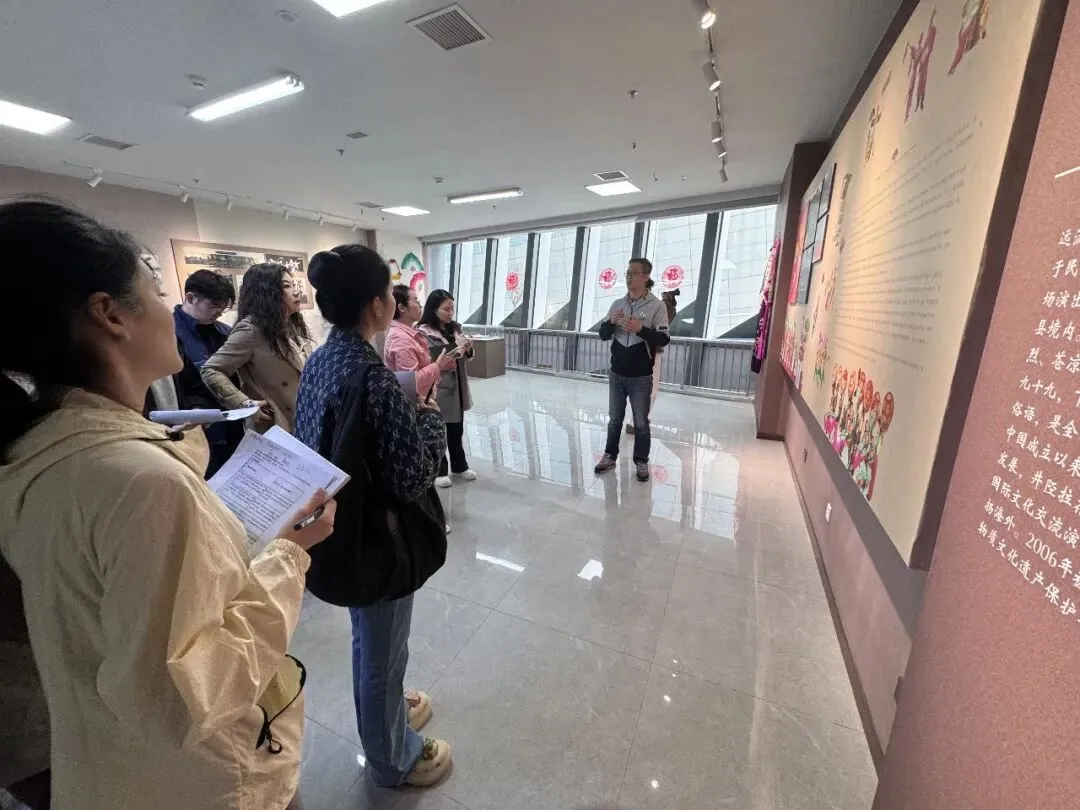 活动伊始,同学们参观了拉花非遗展厅。通过图文展示与细致的讲解,大家详细了解了井陉拉花的历史起源、发展脉络以及拉花的三大流派。展厅内,伞、