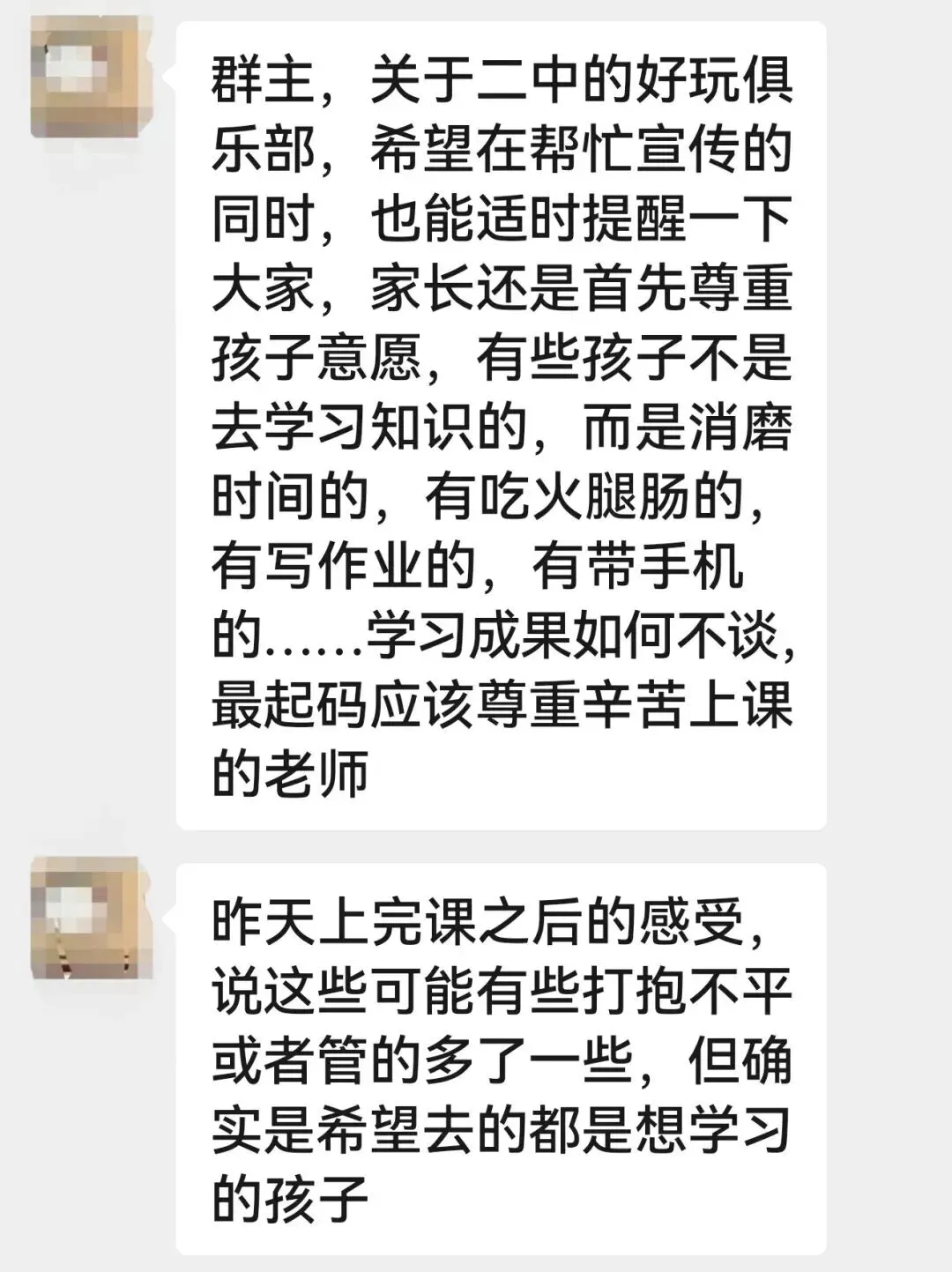 不少送娃来“好玩”的家长,其实也察觉到了这样的问题了。上周,就有家长跟我反馈,有些孩子可能是被家长硬逼着来学的,课上根本无心听讲:有人玩手机、有人啃火腿肠、还有人偷偷写作业,全程浑水摸鱼。说到底,就是课堂难度与孩子学习水平的严重错配。同时,二中老师也发现了这个问题,因此搞这场测评就是精准筛选,那些数学工具、物理前置基础没打牢的;只听不练、敷衍了事的;没兴趣、被家长生拉硬拽来的,都可能暂别“好玩俱乐部”这个平台。