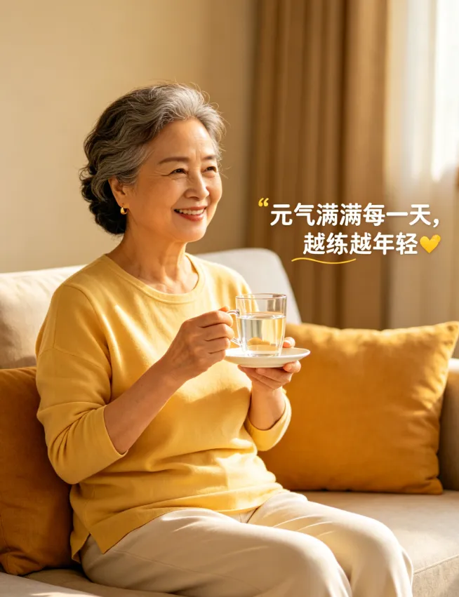 4. 小提醒✨:做动作时一定要慢慢做,别用力过猛,避免拉伤肌肉、扭伤关节,尤其是腰部和颈部,动作舒缓为主;每天固定时间练,比如早上起床后、下午散步回来,效果会翻倍;练完后喝一口温白开水,补充水分,让身体更舒适;如果练的时候感觉身体不适,就立刻停下来休息,别勉强自己。
