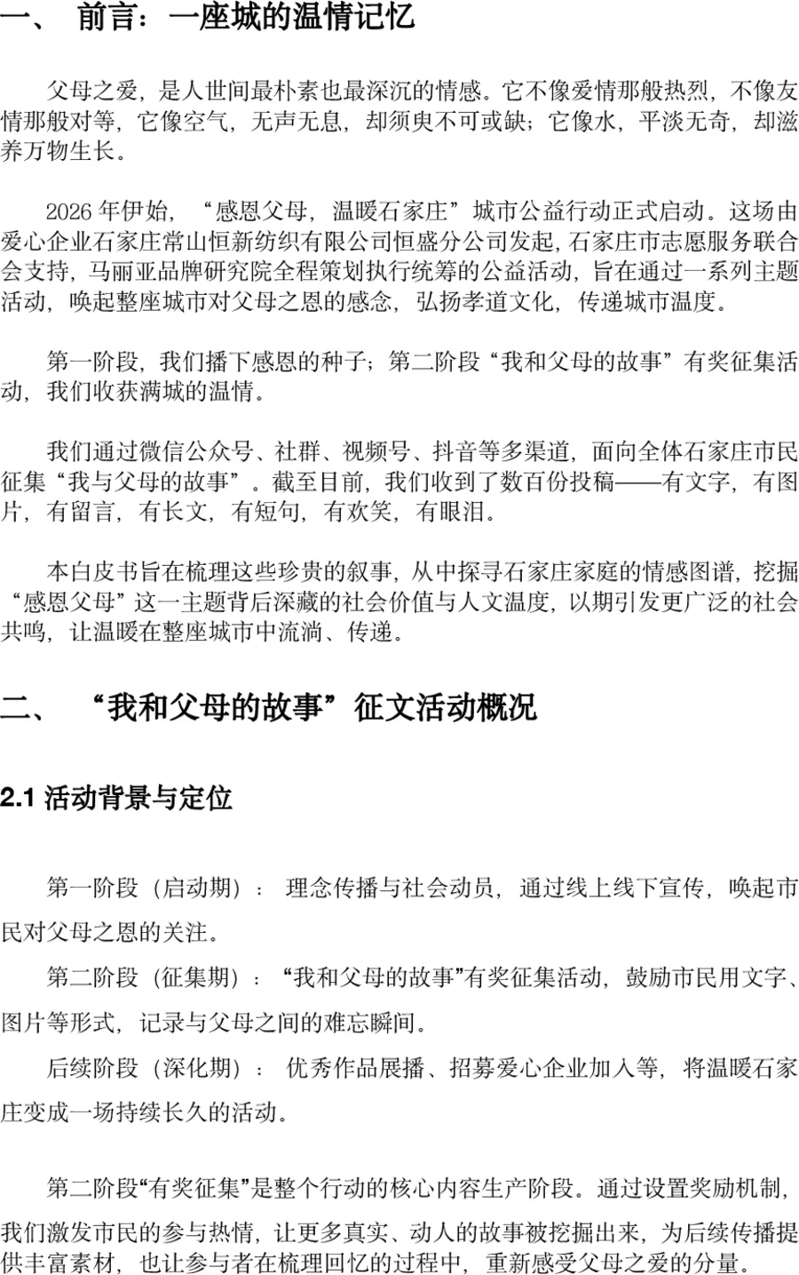 同时现场公示了“感恩父母,温暖石家庄”城市公益行动暨我和父母的故事征文活动白皮书,确保评选过程公开、透明。