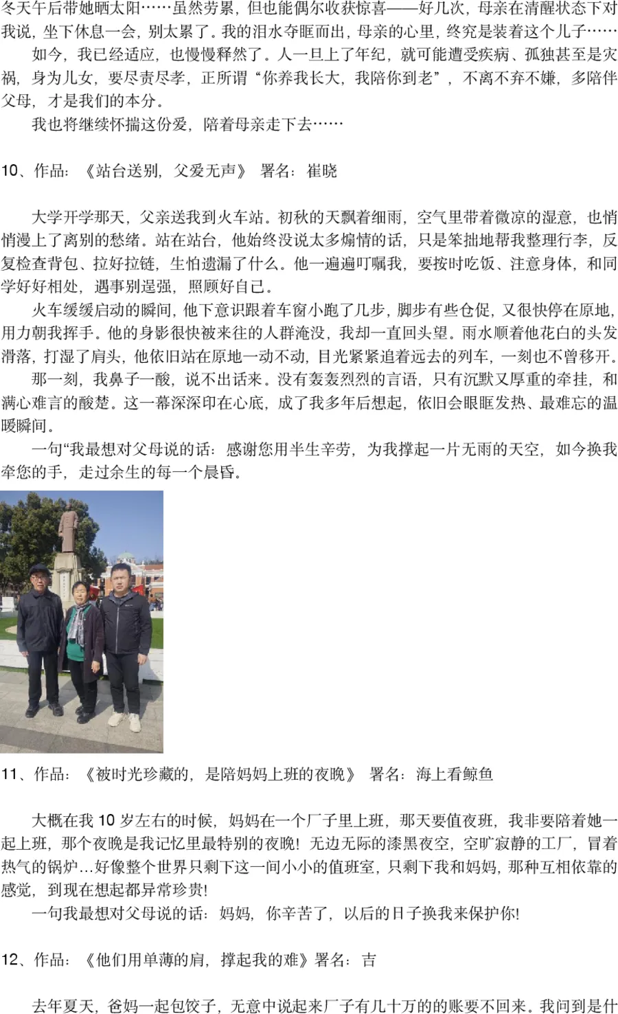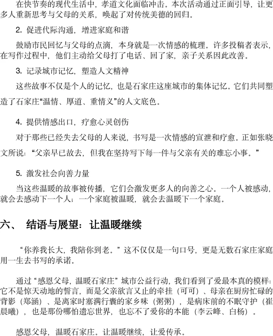 本次“我与父母的故事”征文活动虽已落幕,但“感恩父母”的初心从未停止。愿我们都能把对父母的爱,藏在日常的点滴里,用陪伴与关怀,回报他们曾经的养育与守护,让温暖与孝心,在石家庄这座城市,一直传递下去❤️